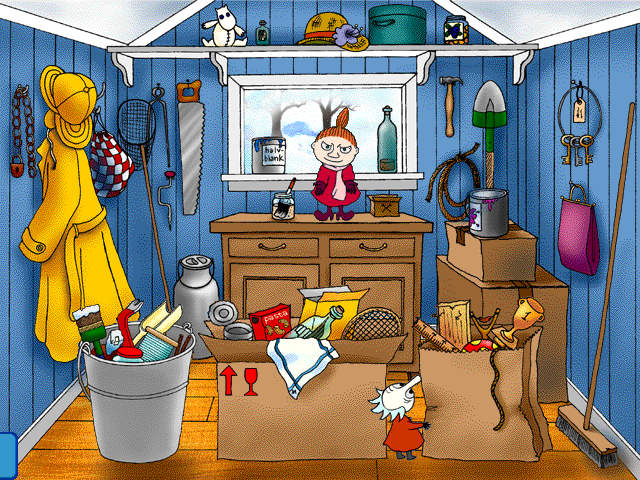 Среди развлечений имеются складывание изображения из разрозненных фрагментов причудливой формы (то есть самый что ни на есть "jigsaw puzzle"), строительство ледяного замка (тоже из множества элементов), игра на "ксилофоне" из сосулек, помещение предметов в подходящие для них по конфигурации формочки, довольно занятная мнемоническая забава (показываются и затем исчезают некоторые предметы, после чего ледяные кубы в левой части экрана заполняются разными вещами; наша задача - найти среди последних те, что демонстрировались до этого). Представлено и несколько, с позволения сказать, "аркад": зимняя рыбалка в проруби, "гонка на "ватрушке" (автоматически движущаяся "навстречу игроку" малышка Мю должна с помощью наших оперативно отдаваемых команд объезжать заснеженные ели) и даже очень своеобразный платформер, в котором героиня прыгает по предварительно расставленным нами по комнатам дома муми-троллей невысоким предметам мебели.