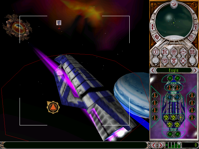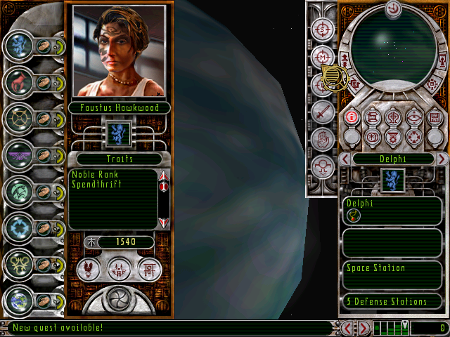 Общий интерфейс заслуживает отдельного рассказа. Безусловно, игра планировалась, мягко говоря, как нереально навороченная. Навороченная настолько, что количество кнопок и пунктов в большом количестве окошек меню на квадратный дюйм экрана просто зашкаливает. Поэтому применены исключительно круглые кнопки и эмблемы, на которых вместо текстовых подписей реализованы одни пиктограммы, причём все они настолько выверены и систематичны, что впору всё это назвать иероглифами. На каждую из кнопок подвешена подсказка (хинт). Здесь удобство, продуманность архитектуры и качество являются образцовыми.