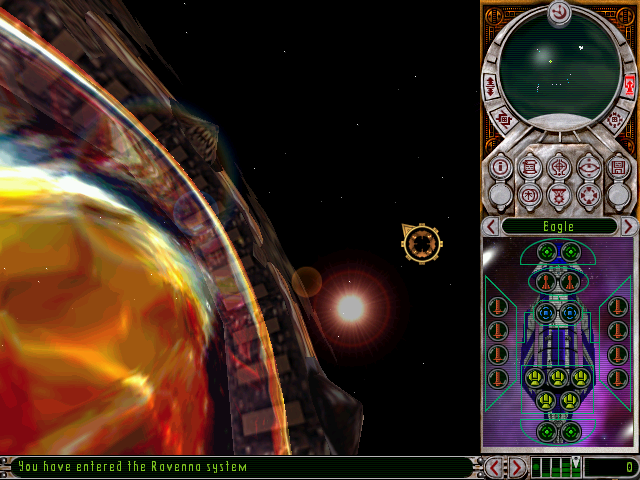 Графика, если не считать невероятно красивые инкрустированные менюшки с аккуратными круглыми кнопками, вполне себе посредственная: модели кораблей не такие сложные и детальные, как в других подобных играх того времени, планеты выполнены слабо текстурированными и угловатыми, но зато с полупрозрачной оболочкой атмосферы. Системы связаны через огромные звёздные врата, графически выполненные просто бесподобно красиво. За летящими кораблями тянется эффектный реактивный шлейф разных цветов. При абордаже или попаданиях на вашем судне слышен звон и дребезг разрушаемого оборудования и устройств. Опять это сильно напомнило старый добрый Alpha Storm (эх… сделали бы разработчики ещё и возможность «покрошить» нападающих в режиме 3D-шутеръ…). От ваших подчинённых реализованы речевые звуки кратких ответов или докладов. Музыкальных тем в демоверсии нет.