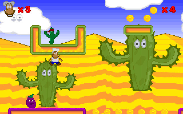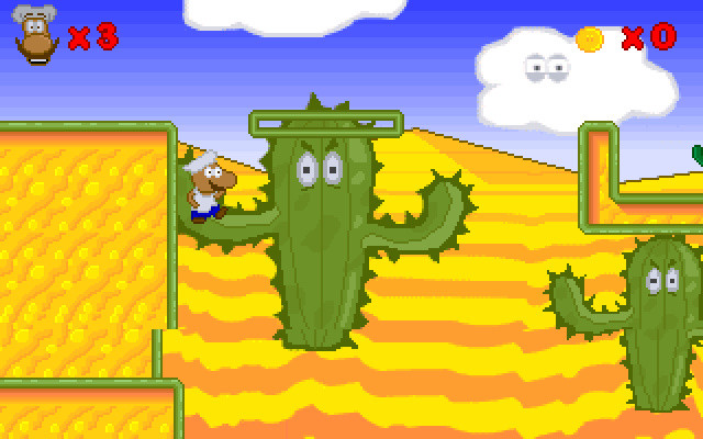 Судя по названию, является подражанием Super Mario Bros., однако связи с оригиналом почти не имеет. Сюжет полностью отсутствует - нет даже предыстории. Главный герой – забавный смуглый усач в поварском колпаке, путешествующий с неясной целью по разным местам и собирающий монеты. На пути встречаются враги один необычнее другого: это и кактусы с повязками, как у черепашек-ниндзя, и прыгающие баклажаны, и падающие и при этом ехидно ухмыляющиеся камни (!), и другие. Встречаются даже баклажаны, летающие с реактивными ранцами! К сожалению, любое прикосновение к ним смертельно для героя и ведет к возвращению на начало уровня с потерей жизни (но собранные монеты и уничтоженные враги не появляются снова). Всего 4 жизни, сохранений и паролей нет. Отсутствует и оружие, так что бороться с неприятелями можно только прыжками на них.