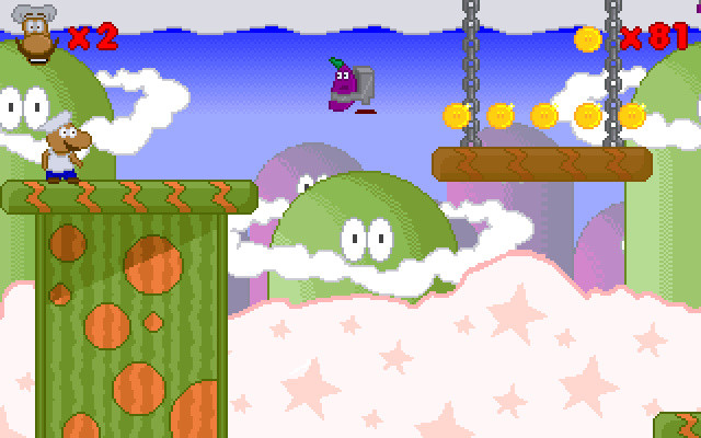 Уровни очень разнообразны и хорошо прорисованы, пусть и не изобилуют мелкими деталями. Придётся пройти через каньоны, подземелья с развешанными тут и там пылесосами, волшебные облака и многое другое. Музыка звучит приятная и задающая темп игре.