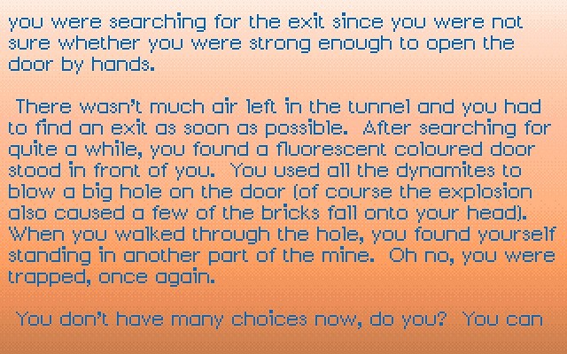 Сюжет есть, но довольно простой: шахтёр остался работать, когда все его коллеги уже ушли; внезапно прогремел взрыв, в результате которого он оказался под завалом, и теперь выбраться можно только через эвакуационный выход. Как раз к нему нам и нужно провести героя, пробиваясь через сложные подземные ходы.