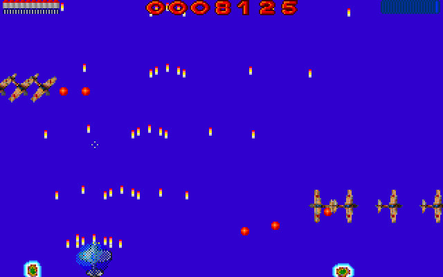 Основную опасность представляют столкновения с вражеским самолётами: некоторые из них даже специально идут на таран. Наш самолёт имеет запас здоровья, который может пополняться бонусами. Помимо аптечек среди них есть бонус, позволяющий стрелять огромным количеством снарядов одновременно (стандартно мы стреляем пятью сразу), создающий вокруг нас защитный купол, а также дающий сверхмощное оружие, выглядящее как некие звуковые волны. На крайний случай в дополнение к бесконечному обычному боезапасу у нас есть ограниченное количество ракет, которое, однако, можно пополнить – иногда встречаются союзные корабли, и на них можно совершить кратковременную посадку. В конце игры, кстати довольно короткой, нас ожидает традиционная встреча с боссом.