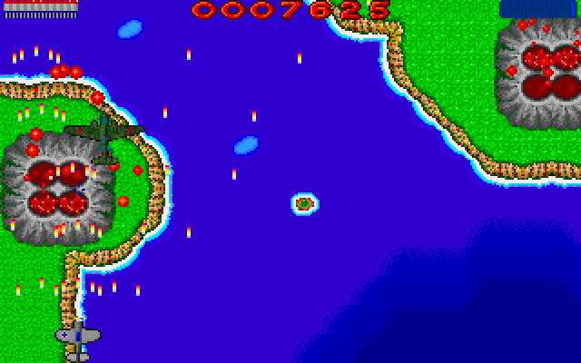 Мы играем истребителем и пролетаем над морем, островами с вулканами и различными укреплениями. Мешают нам несколько видов авиационной техники, а также ряд наземных противников: корабли, турели, зенитки, различные укрепления, а также вулканы. Последние, конечно, не противники в прямом смысле слова, - но все они извергаются, выбрасывая большое количество лавы в виде шариков, которые отнимают здоровье.