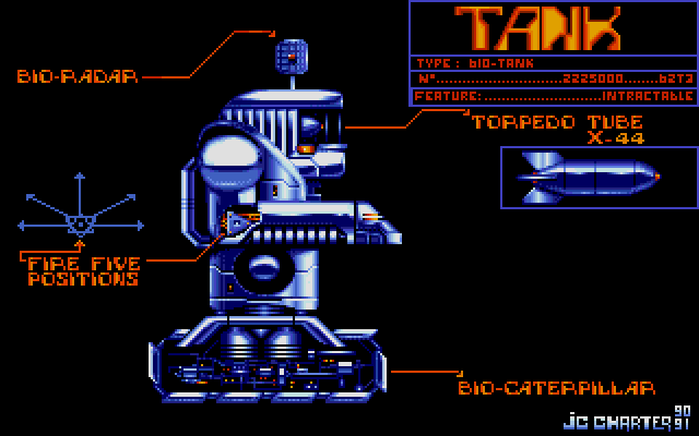 Tank – оснащен радаром и торпедой X-44. Передвигается на гусеницах. Имеет лазер, у которого пять позиций для стрельбы. Очень полезен, когда сверху на тебя летят толпы зеленых тварей. Нет смысла рассказывать вам о летучих тварях – вы сами их скоро увидите!