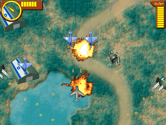 Графика, быть может, и не самая роскошная - но вот для бесплатной арабской игры конца 1990-х поистине фантастическая: по сути, она ничем не уступает таковой в коммерческих играх подобного направления, выходивших на Западе и Дальнем Востоке вплоть до середины вышеназванного десятилетия. Лесисто-равнинный (а вовсе не пустынный, как можно было бы подумать) ландшафт прорисован с явным тщанием, различные типы техники выглядят очень аккуратно и как минимум "узнаваемо". Правда, визуализация атаки у всех них, кроме самоходных зениток, одна - совершенно нереалистичные огненные шарики (мы стреляем двумя очередями примерно таких же "зарядов", только удлинённых), - но вот те самые ракеты выглядят очень даже здорово. Примечательно, что на карте имеется два ангара (как раз с государственными флагами, в некотором роде присутствующими и на отдельных типах техники), которые разрешается уничтожить, - это ничего не даёт, но анимация частичного взрыва такого объекта (наблюдаемая также после "расстрела" локатора) предусмотрена. Наконец, после уничтожения техники на местности остаются её остовы.