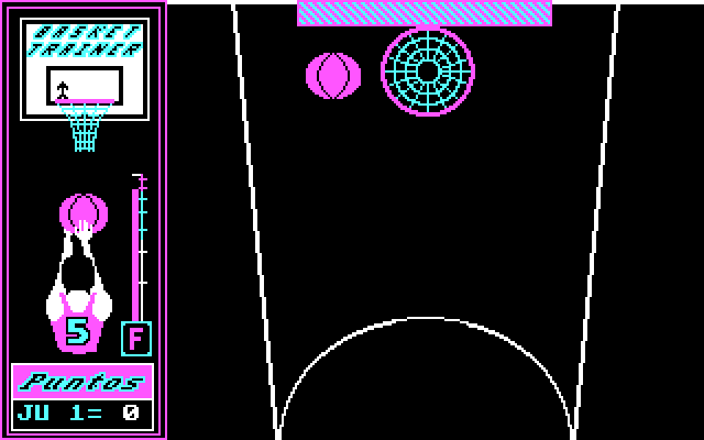 Играть весьма сложно из-за высокой скорости как перемещения указателя, так и роста столбика силы броска, - причём это именно изначальная авторская задумка. Кроме того, траектория полёта мяча и его поведение после соприкосновения с кольцом, мягко говоря, неочевидные: опытным путём установлено, что для достижения успеха необходимо зажать "пробел" именно в момент нахождения стрелочки строго по центру корзины, а отпустить - когда полоска достигает "предпредпоследнего" деления на шкале силы броска (то есть последнего голубоватого; выше идут ещё два розовых). Графика, как и во всех проектах Ediciones Manali, исполнена в CGA-палитре и предельно минималистична; вместе с тем нельзя не отметить красивую и даже, что удивительно, разнообразную анимацию движений мяча (он вращается по ободку корзины, отскакивает от пола, упав на него, и так далее). Игровой процесс, с одной стороны, относительно увлекательный, но с другой - одновременно неадекватно сложный и донельзя однообразный. Основная же ценность данной вещи - коллекционная.