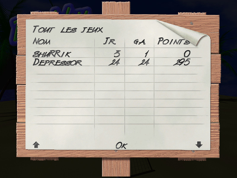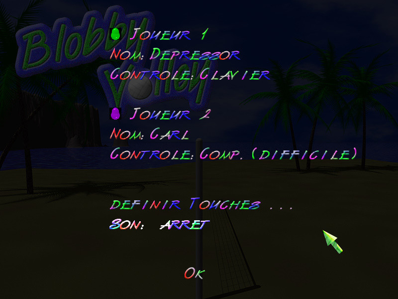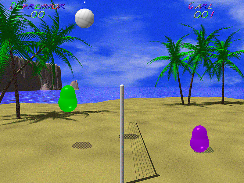 Вы и ваш оппонент - два каплевидных существа, играющих в волейбол один на один. Во всём здешнем мире существуете только вы, сетка и мяч. Правила практически как в обычном волейболе - три касания мяча на своей половине поля, после первого касания мячом пола - переход подачи, после второго касания - очко. Игра идет до 15 очков. Несмотря на кажущуюся простоту, она захватывает так же, как и оригинал. Физика вполне достоверная, движения мяча предсказуемы.