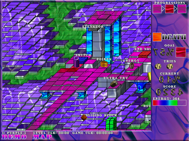 Квадраты бывают разных типов - некоторые являются лифтами (пружина может вытягиваться лишь на ограниченную длину, и часть высот ей просто так не доступна), другие - телепортами, а кое-где могут и вовсе отсутствовать, образуя смертоносную пропасть. Да, погибнуть здесь можно, и способов тому, помимо только что упомянутого, есть множество: наступить на неправильную клетку, соприкоснуться с противником, прийти к финишу, не выполнив поставленной задачи, или израсходовать изначальный запас энергии.
