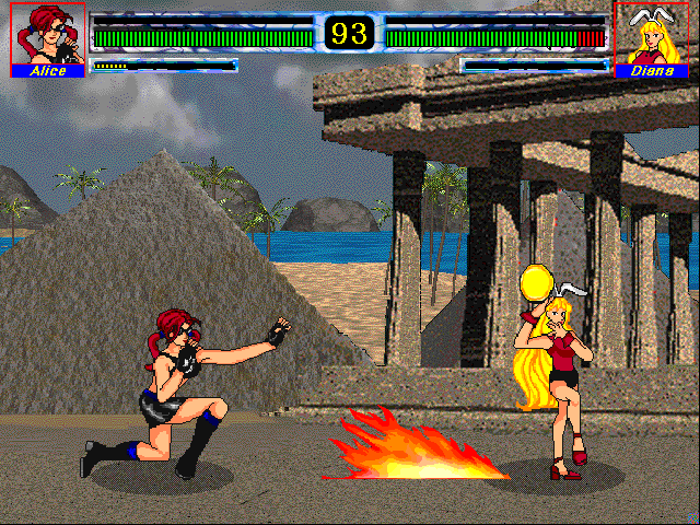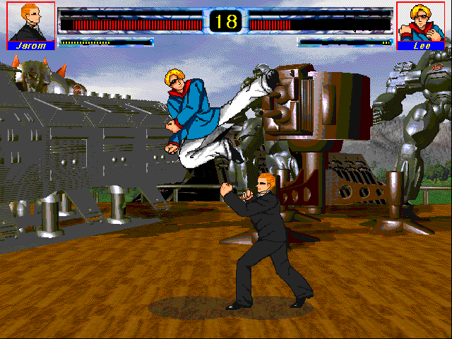 Эксклюзивный южнокорейский файтинг, при этом полностью англоязычный (хотя текст здесь в принципе ограничен лишь пунктами меню и несколькими словами, появляющимися на экране по ходу действия) и имеющий сразу три названия ("Double Fighter" на обложке, "Duel Fighter" на первом титульном экране и "Duel Fighters" на втором). Данная вещь относится к категории "сверхбюджетных" игр родом из упомянутой страны, созданных для не вполне понятной целевой аудитории и даже на родине фактически никому не известных, но при этом, что удивительно, издававшихся на физических носителях. Сюжет очень условен и одновременно стандартен для жанра: двенадцать колоритно выглядящих бойцов решили сразиться друг с другом за некий чемпионский титул. Среди них есть две девушки (разумеется, несколько странно одетые) и десять мужчин; в числе последних попадаются интересные личности - лысый здоровяк, одноглазый капитан, бородатый джентльмен, азиат-интеллигент в деловом костюме, хиппи с длинными зелёными волосами, фокусник с картами и так далее.