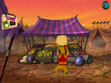 По сравнению с более поздними сериями игр Скуби-Ду Jinx at the Sphinx действительно выглядит как эпизод мультсериала, а не ленивый сборник пазлов. Есть достаточно видеовставок, пусть и с примитивной анимацией, и комментарии, и ряд других персонажей. Остались разные «приколы» на локациях — типа дёрни за свистоперделку, чтобы та свистопёрнула. На разных экранах, которых здесь не больше пятнадцати, можно либо подбирать редкие предметы, либо решать головоломки. В этот раз пазлы проще, чем в будущем Glowing Bug Man, и на средней сложности никаких проблем и напряжения извилин вообще нет. Повторить мелодию, разложить грузики по весам, отсортировать от большего к меньшему, — несерьёзно. Аудитория от 5 до 10 (я бы поднял планку до 7-8) здесь тоже справится без проблем. И в итоге мы получаем всё тот же интерактивный эпизод на полтора часа, но более качественный и складный, чем поздние сиквелы. Вместо Бивиса и Баттхеда — пёс и его ...эээ партнёр, а вместо скабрезного юмора — шутки на тему еды и её неумеренного поглощения.