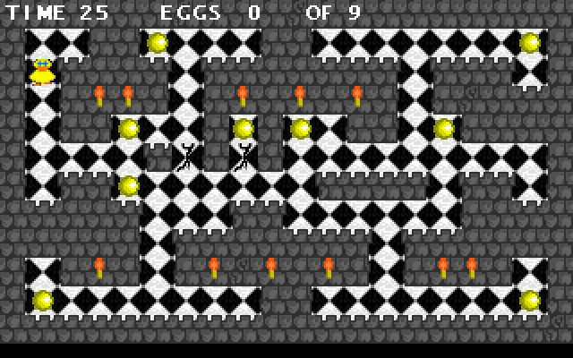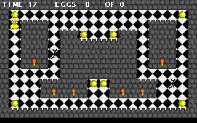 Играть предлагается за утку, блуждающую в небольших лабиринтах с видом сверху и собирающую яйца. Ни врагов, ни препятствий, ни головоломок здесь нет – только жёсткое ограничение по времени, которое и является основным элементом геймплея. На каждом уровне нужно собрать все яйца – и обязательно до того, как таймер покажет ноль. В противном случае нас ожидает “game over” и игру придётся начинать заново – никаких трёх жизней не предусмотрено.