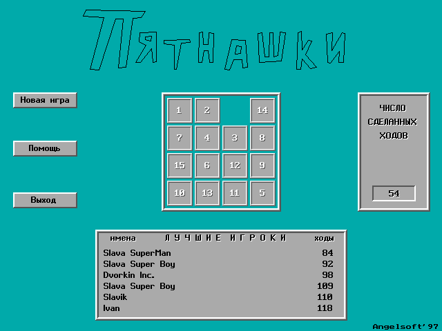 Компьютерный вариант пятнашек, созданный студентом Новосибирского государственного технического университета Вячеславом Булатовым.