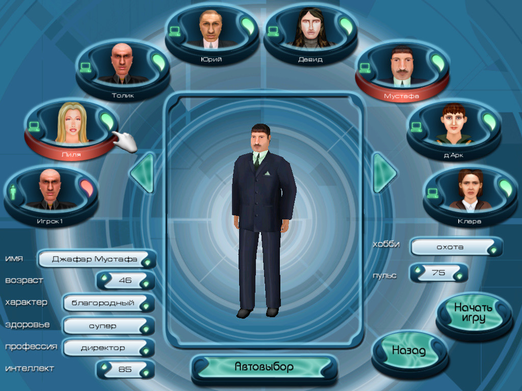 Правила кажутся банальными, но это само по себе не делает игру плохой. Проблема в том, что всё остальное здесь не просто плохо – чудовищно. Всего имеется несколько десятков персонажей, из которых каждый раз выбираются случайные восемь участников текущей игры, а уже из них можно выбрать любого под своё управление. Кого тут только нет! Страдающий гигантизмом Давид Манукян, звезда цирка Барнума Жанна Д’арк (да, именно так её зовут), квадратноголовый усач Джафар Мустафа, явный уголовник-рецидивист Толик Тамбовский, предположительно порноактриса Лиля Блондинова, женщина с именем Клара Цеткин… В общем, компания собралась ещё та. Все эти господа и господамы имеют неописуемо уродливый вид, и не потому, что здесь используются 3D-модели уровня 2000 года и без лицевой анимации, а просто потому, что их такими сделали.