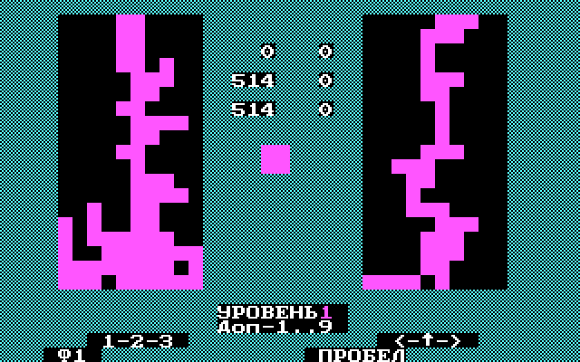 Вариация Тетриса, только с двумя полями. Первоначально создана для советских компьютеров “Электроника МС 1502” в 1989 году, но затем была перенесена на DOS.