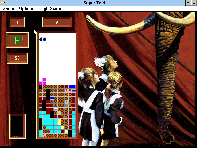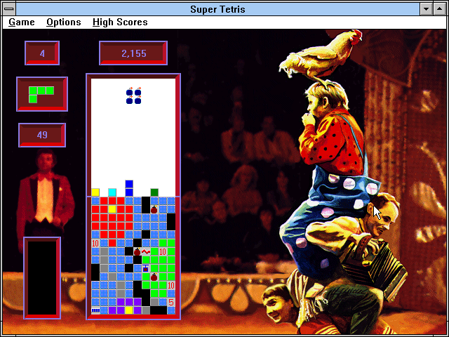 Переиздание одной из самых популярных версий "Тетриса" для Windows, последовавшее в том же году, что и куда более известный вариант для DOS. С точки зрения игрового процесса отличий здесь, понятное дело, никаких нет: в игре шесть режимов (для одного пользователя, для него же с различными ограничениями по времени и два варианта мультиплеера, на сотрудничество и на соперничество, но только за одним ПК: сетевому варианту на Windows места не нашлось); десять уровней сложности с чудесными фоновыми иллюстрациями на тему советского циркового искусства и музыкальным сопровождением; стакан, изначально уже наполовину заполненный (или всё-таки наполовину пустой?), - и самые разнообразные бонусы, призванные облегчить задачу по его освобождению от уже имеющихся и мерно падающих сверху новых фигурок.