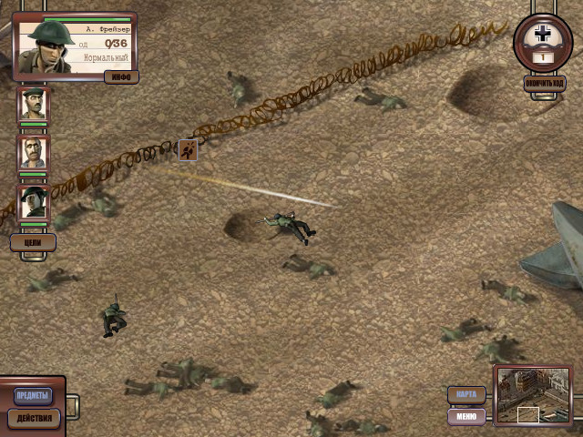 Неизвестно, кому из штата разработчиков пришла «светлая» идея в качестве движка взять Flash, но результат вышел «потрясающий». Так как узреть в 2006-м архаичное 640x480, да ещё и не полноэкранное, а крохотное оконце в обрамлении леттербоксинга, — действительно шокирующе! Для тактической стратегии столь мизерное поле зрения смерти подобно! Но если на первой миссии это ещё не так ощутимо (при том условии, что вы стерпели истязание вашего зрения этой «щелью», надеясь, что, быть может, с остальными аспектами игры всё в порядке), то уже на второй повисает жерновом на шее геймплея, утягивая его в пучину. В нагрузку ему к ноге подвязан мешок булыжников в лице тугого скроллинга, крайне неохотно следующего движениям мыши. И в довершение сверху сваливают огроменный кусок скальной породы в лице невозможности сохранения в ходе задания. На этом фоне ворчание с первой миссии, утомляющей ожиданием ковыляния подопечного нам подранка к спасительной надувной лодке, а также упрёки в адрес кривоватых контекстных меню с раздражающим звуком кажутся барским капризом. Полагаете, отсутствие сейвов компенсируется лёгкостью прохождения? Как бы не так! Сложность впивается в горло со свирепостью притравленной человеческим мясом концлагерной овчарки. А ведь поначалу картина вырисовывалась обнадёживающая: впереди стоял танк, обещавший задать краутам жару. Подползти, влезть — и вдарить по вражине напором стали и огня! «А ну, брысь, салага! Ишь чего захотел! Тут тебе не разудалые Commandos и "В тылу врага"! Решил наступать на неприятеля, щедро отстреливаясь из пулемётов и основного орудия, попутно прикрывая бортами свой отряд? Не для тебя Британия танк отгрохала, гений тактический: постреляешь разика два, а там — пешедралом шуруй!» Немцы ведут ожесточённую пальбу, находясь на господствующей высоте, тогда как ваши бойцы должны переть почти на верную смерть, используя немногочисленные укрытия. Здесь ожидает очередная подлость: думали спрятаться, используя оставленную взрывом воронку? Снайперу фрицев на это наплевать. Получив ранение, снимающее почти всю полоску HP, вы дожидаетесь медика, чтобы обнаружить, что у него на весь ваш отряд одна-единственная аптечка, восполняющая ничтожно малое количество здоровья. Матерно выругавшись, продолжаете штурм набережной. Бойцу не хватило пары ОД, чтобы добежать до спасительного укрытия, — после окончания вашего хода немцы открывают по нему кинжальный огонь. Бедолага гибнет. А вместе с ним заканчивается и миссия. «Приступай заново, боец!» На этом я дезертировал. Претерпевать муки улиточного темпа, полнейшего отсутствия контроля поля битвы, скудного арсенала и несносного управления было решительно невозможно. «Что ж ты не стрелял по гадам в ответ, а позорно бежал с поля боя? Почему ни слова о стрелковом оружии?» — с глумливой ухмылкой спросит ветеран жанра. А потому, что сыны Британии здесь вместо команды «Пли!» знают только приказание «Дозор», вставая столбом (на радость расчётам MG-42), чтобы открыть огонь, как только враг появится в поле их зрения, ограниченном размерами экранчика 640x480, тогда как противник их видит и поливает свинцом с несоизмеримо бОльшего расстояния. Да, вы всё правильно поняли! Игра вообще не даёт выбирать цель самому (единственное, что дозволяется, — указать направление броска гранаты), полностью отдавая стрель