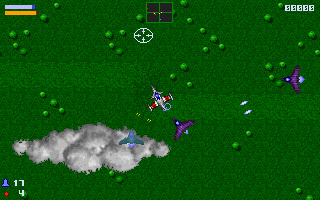Но сила нашего истребителя заключается не только в количестве взятых на борт бомб и ракет. Нет, самое интересное кроется в его уникальных приборах, позволяющих за счёт усиленного расхода топлива на короткое время войти в один из двух режимов полёта. В первом из них – так называемом режиме тени – вы становитесь абсолютно неуязвимы для любых атак противника. Лазеры, ракеты, очереди выстрелов будут проходить сквозь вас, как сквозь призрак. Вам же, в свою очередь, ничто не мешает нести смерть всему живому, оставаясь абсолютно безнаказанным. Второй режим – режим ускорения – не так интересен, но тоже может выручить в критических ситуациях, когда необходимо срочно уйти из-под огня или как можно быстрее добраться до очередной цели. Поэтому если вовремя пополнять резервы топлива, вся вражеская армия не сможет ничего вам противопоставить.
