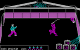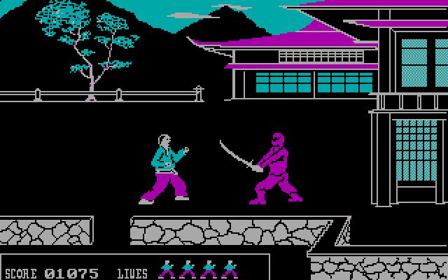 Голубой самурай (видимо, графические ограничения того времени) рубит ниндзя. Обычно черных.