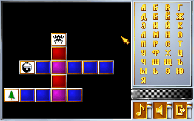 Судя по всему, этот кроссворд рассчитан на детей, так как вместо вопросов тут картинки самых простых объектов вроде яблока, корабля, гриба и так далее. Слева располагается сетка, справа – банк букв, из которого нужно перетаскивать их в клетки. Увы, набирать на клавиатуре нельзя. В первом кроссворде всего два слова, во втором три и так далее; когда будет около десятка слов, их число перестанет расти.