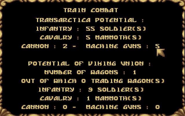 Ещё, в лучших традициях Фоллаутов, нам могут повстречаться random encounters - начиная от разбитых рельсов (которые надо починить... а по пути из-за бархан - то есть из-за ледников - вылезают злые кочевники и штурмуют поезд) и стад мамонтов (их можно и нужно возить с собой - в боях поезд-на-поезд им цены нету) и вплоть до засад в тоннелях (бревно - на пути, людей - на штурм командного вагона). Бои происходят в некоем подобии СидМейрских Pirates! - нам надо координировать действия наших людей, стараясь не допустить, чтобы враги воспользовались динамитом для повреждения состава...