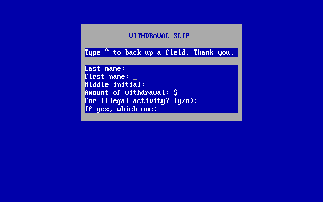 Игровой процесс в целом типичен для жанра "Interactive Fiction": управление осуществляется посредством ввода с клавиатуры различных команд, представляющих собой комбинации глаголов и существительных и предназначенных для разнообразных взаимодействий с окружающей средой и действующими лицами. Важнейшей особенностью является наличие у протагониста "характеристики" - уровня его артериального давления (показывается в правом верхнем углу экрана), рост которого прямо пропорционален неудачам, постигающим нашего героя в ходе его попыток преодолеть бюрократические препоны. Если эта условная "шкала" достигнет определённой отметки, то несчастный сляжет с приступом аневризмы сосудов, а нам будет засчитано поражение.