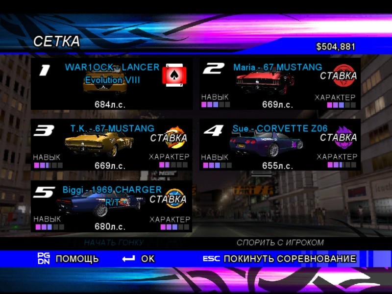 Отдельной особенностью выступает режим pinkslip, т.е. гонка один на один, где на кону автомобиль проигравшего. Из-за достаточно развитого ИИ подходить к нему стоит с большой внимательностью, ведь после запуска заезда ТС игрока априори считается потерянным, потому любой вылет игры, подвисание компьютера или простой выход из гонки означает для него смену хозяина. Отыграть машину (и по совместительству автомобиль соперника) можно, лишь финишировав на первом месте.