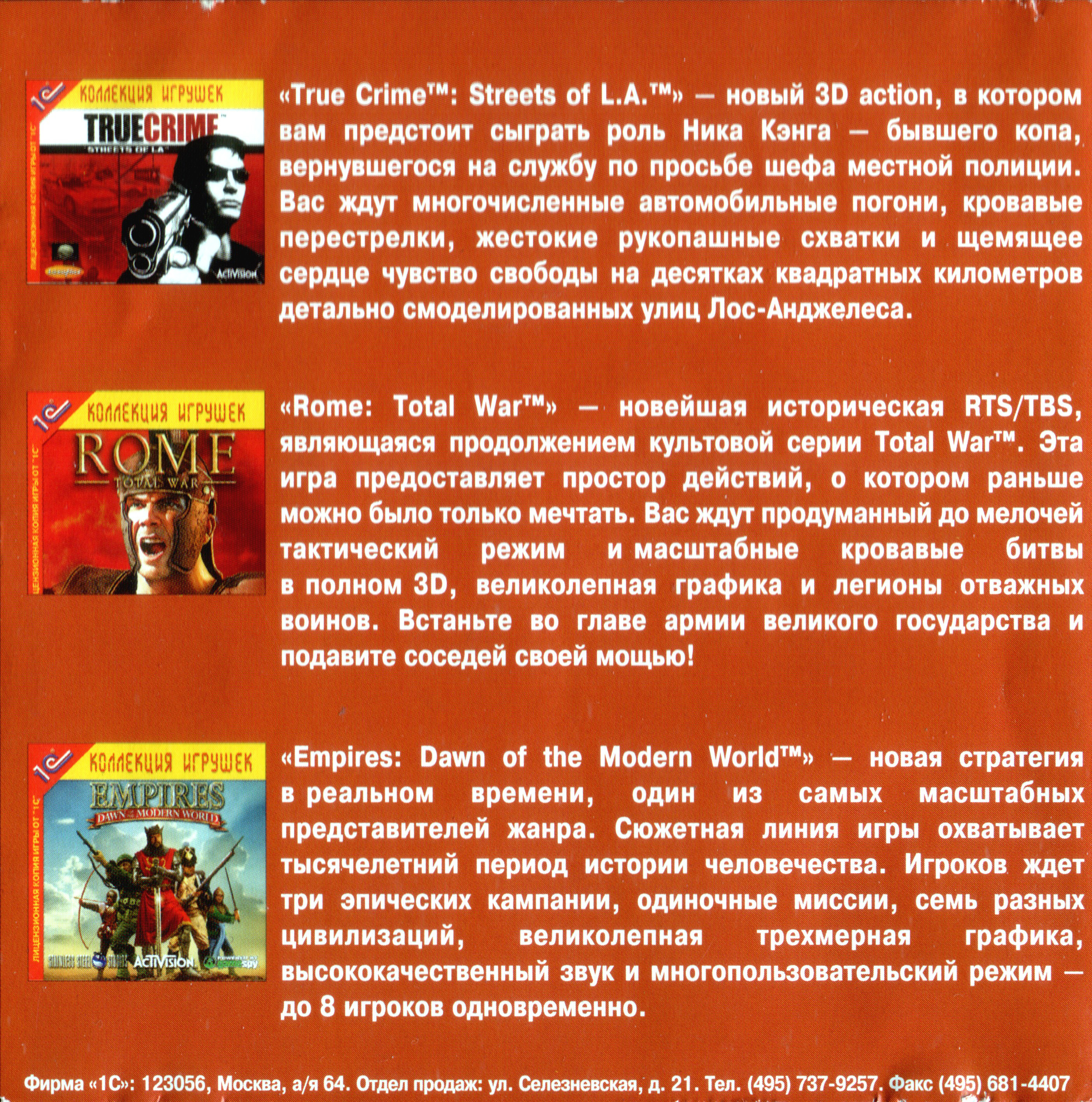 Версия от "1С". Оборотная сторона передней обложки от издания