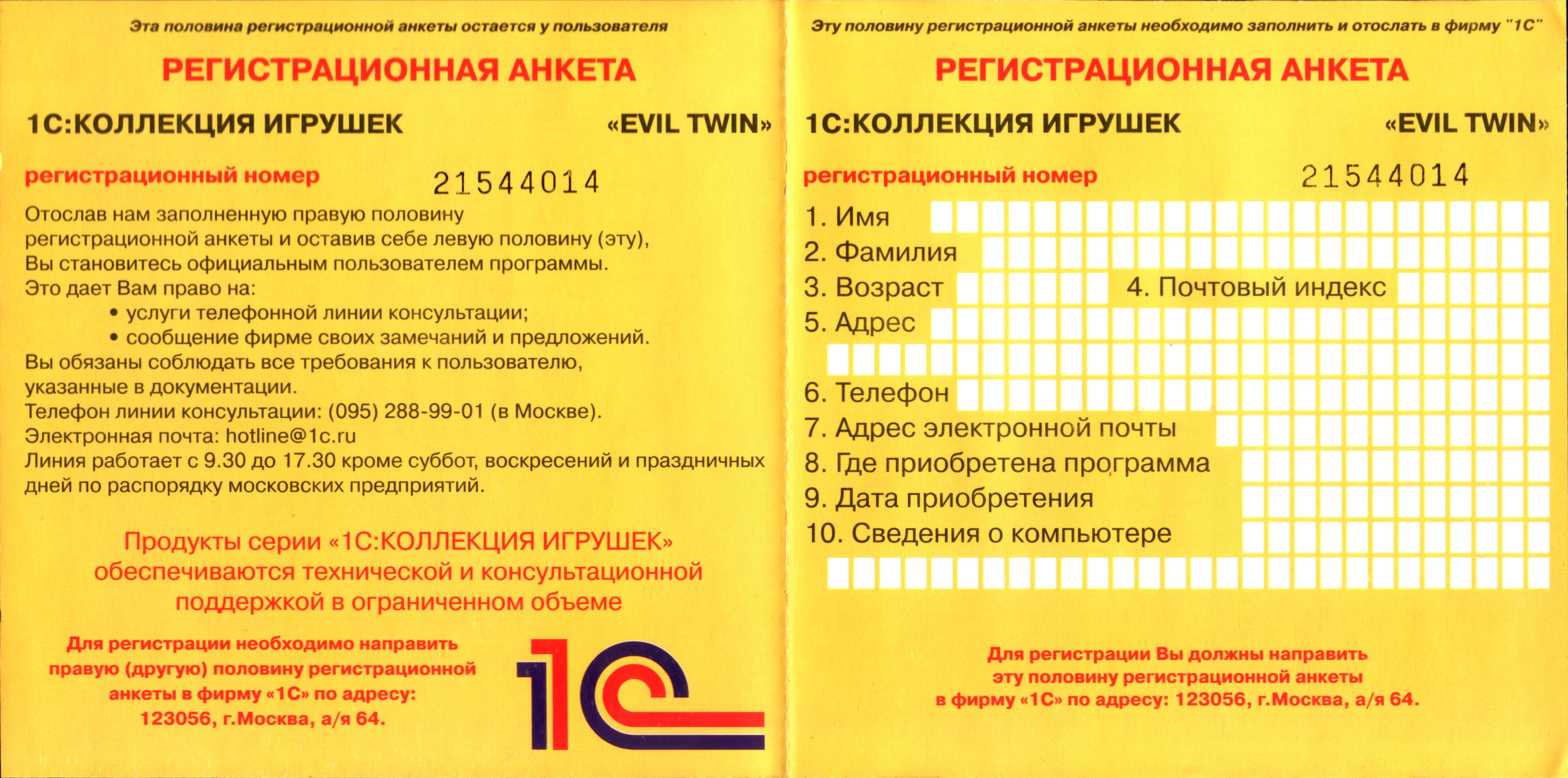 Официальная русская версия от 1С. Регистрационная карточка.