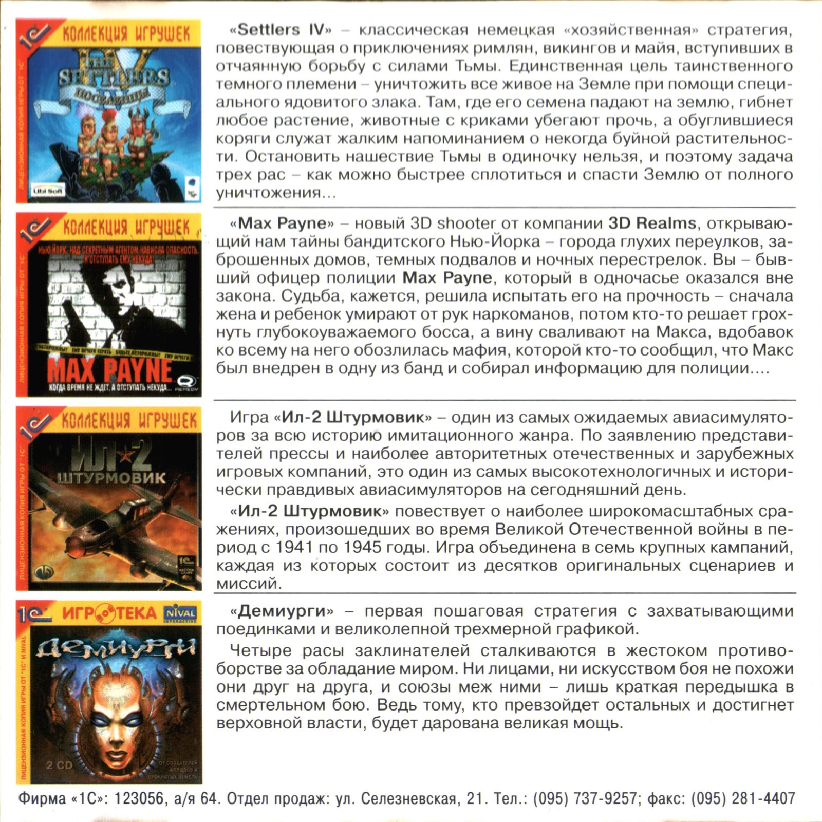 Официальная русская версия от "1С". Оборотная сторона передней обложки