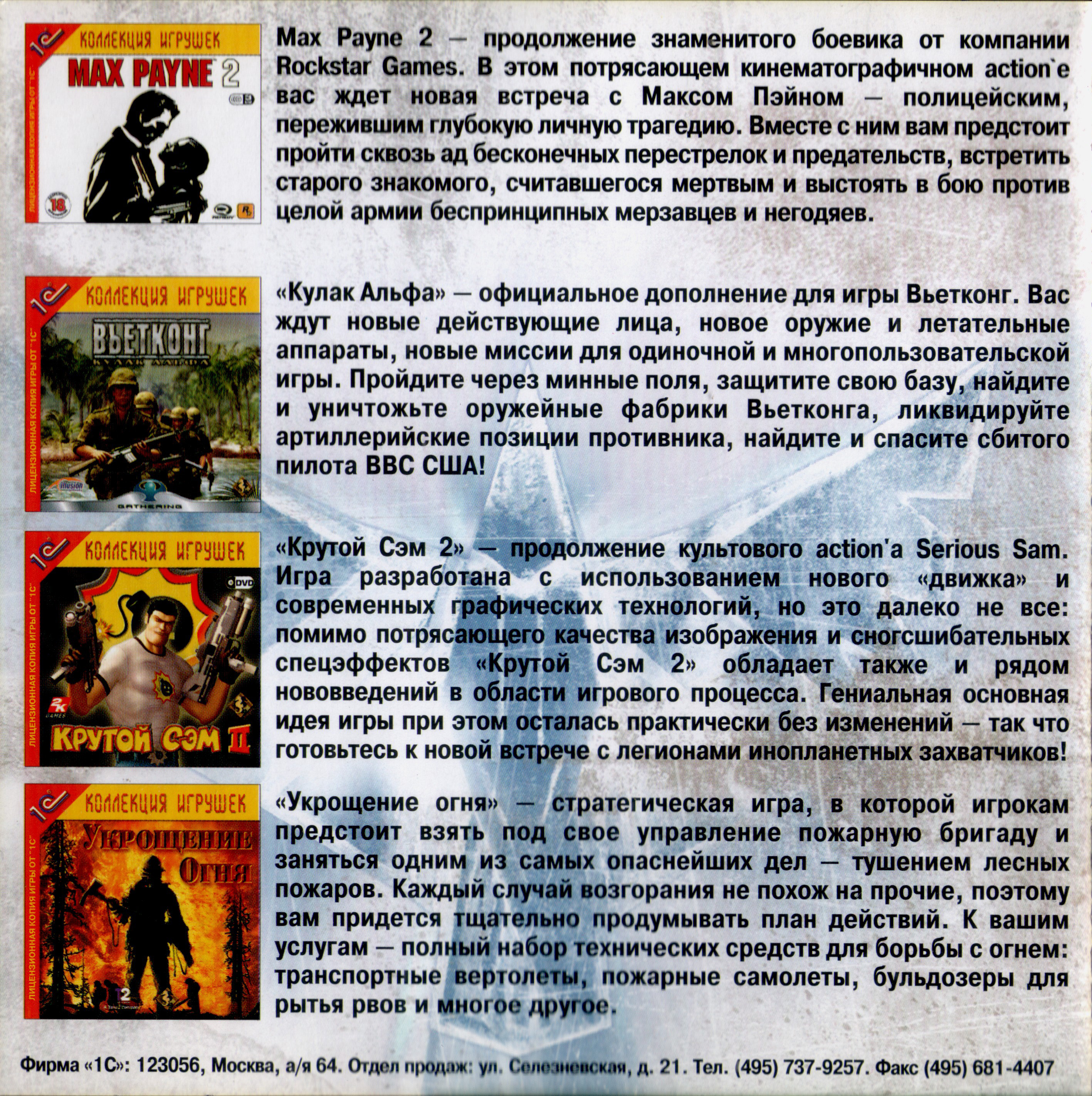 Оборотная сторона передней обложки от DVD издания "1С"