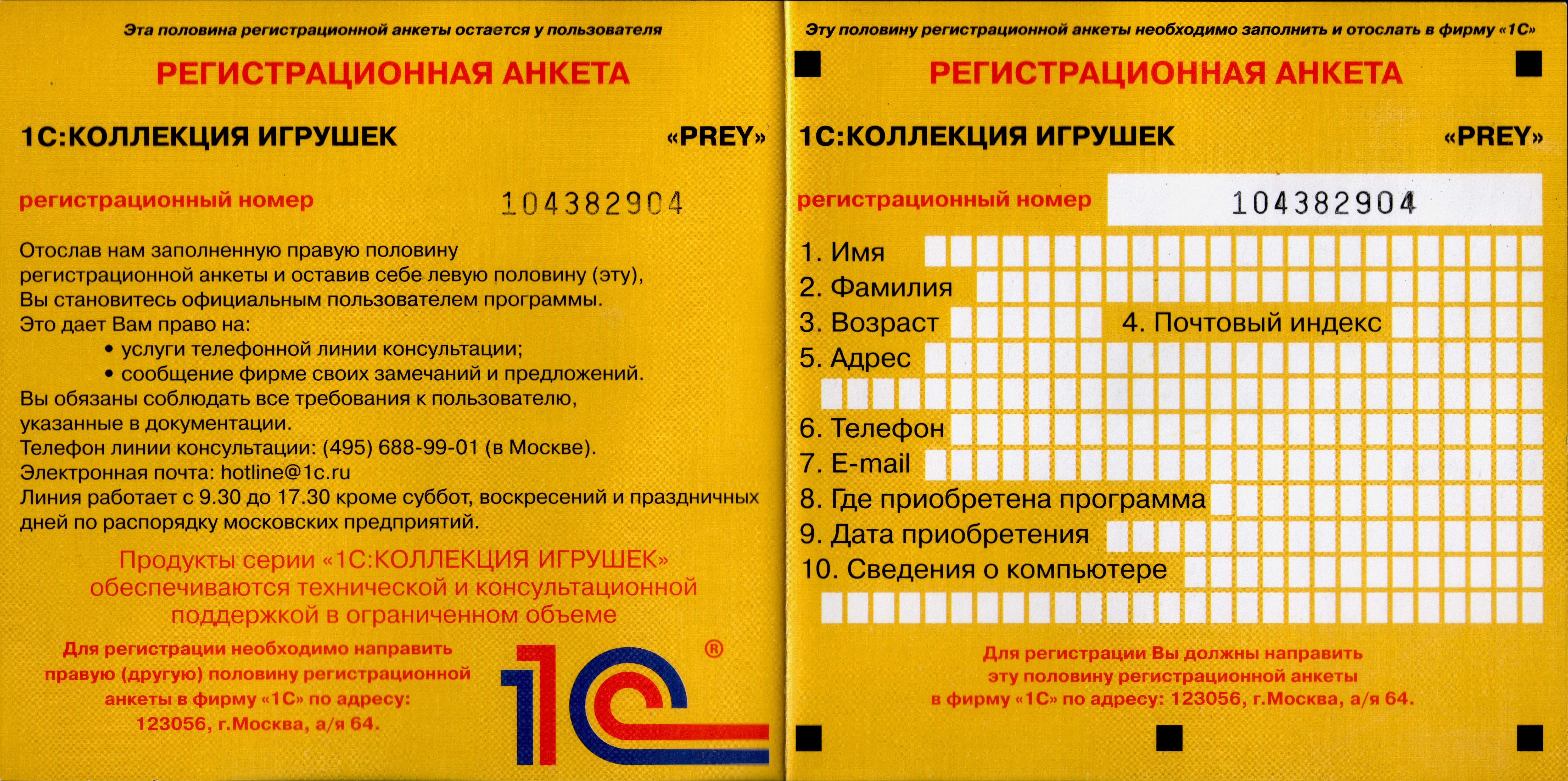 Регистрационная карточка от DVD издания