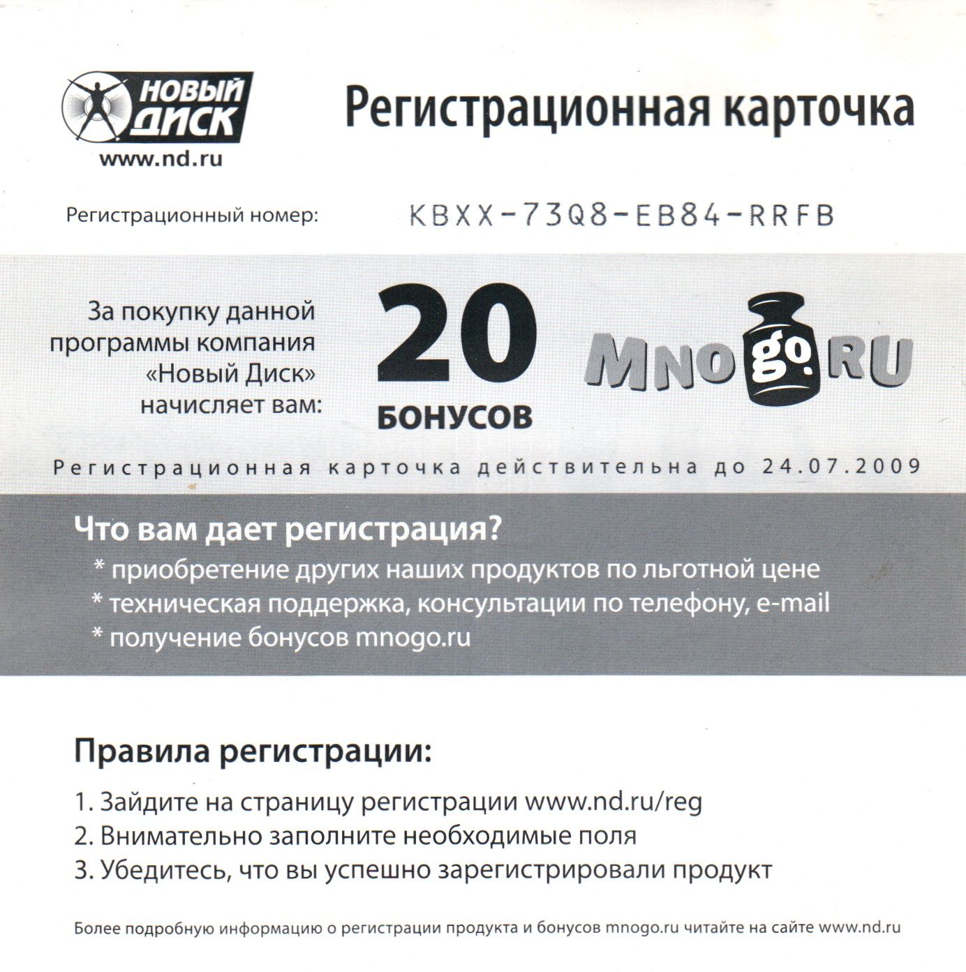 Регистрационная карточка, оборотная сторона