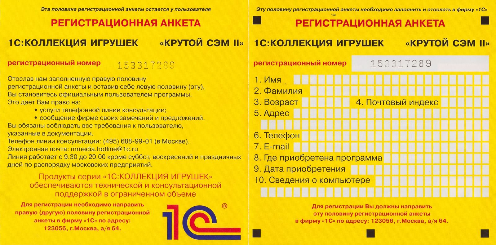 Регистрационная карточка от DVD издания