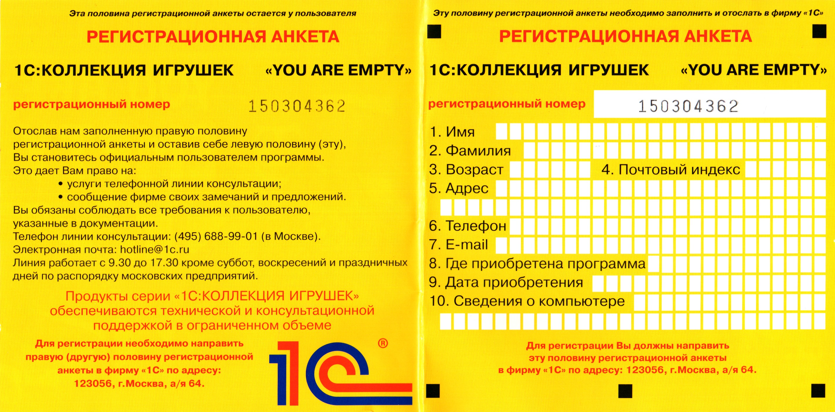 Регистрационная карточка от DVD издания