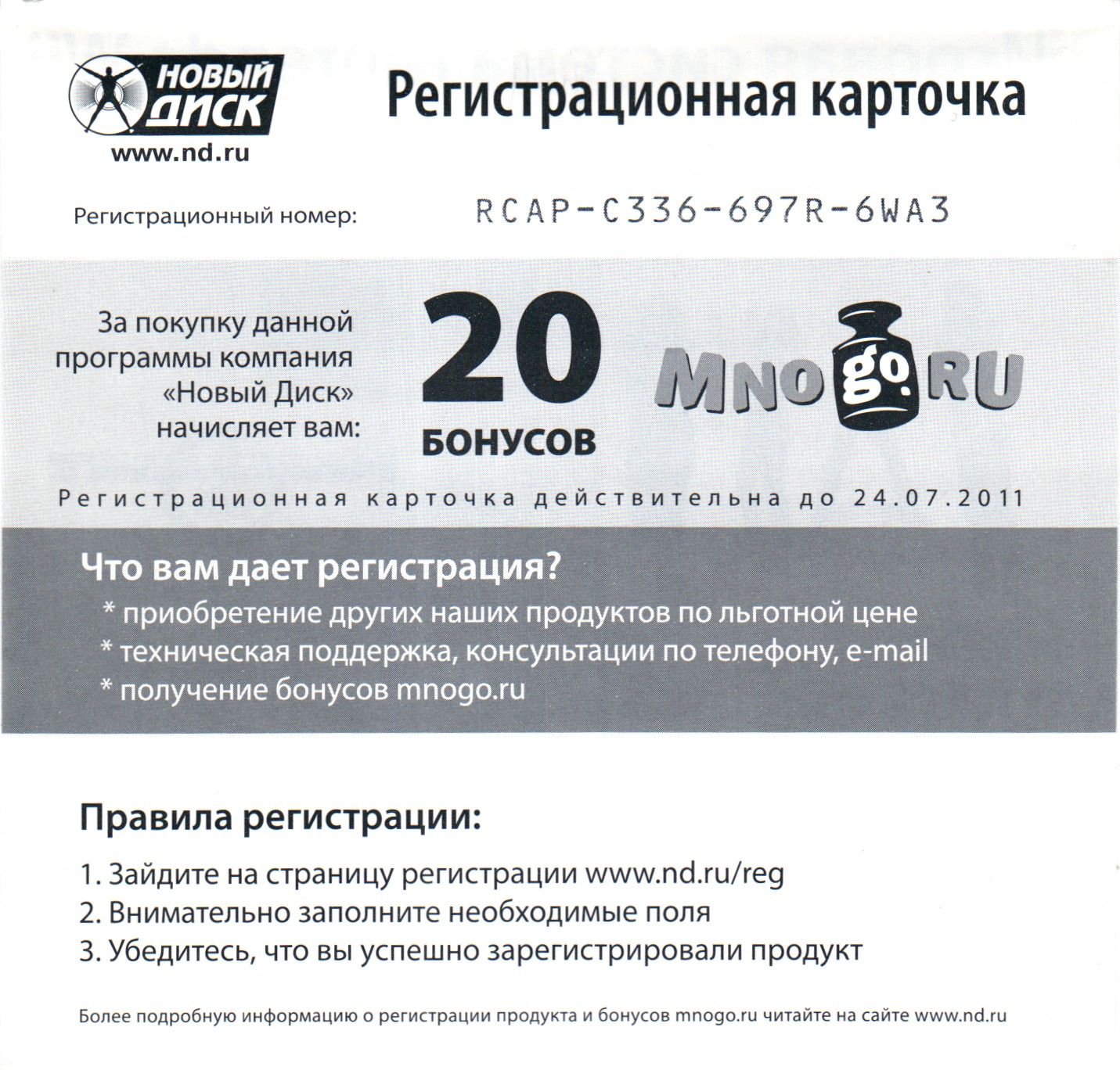 Регистрационная карточка, оборотная сторона