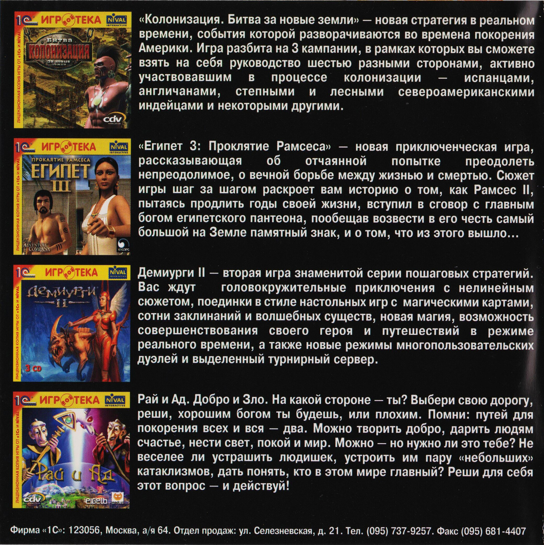 Издание от "1С". Оборотная сторона передней обложки