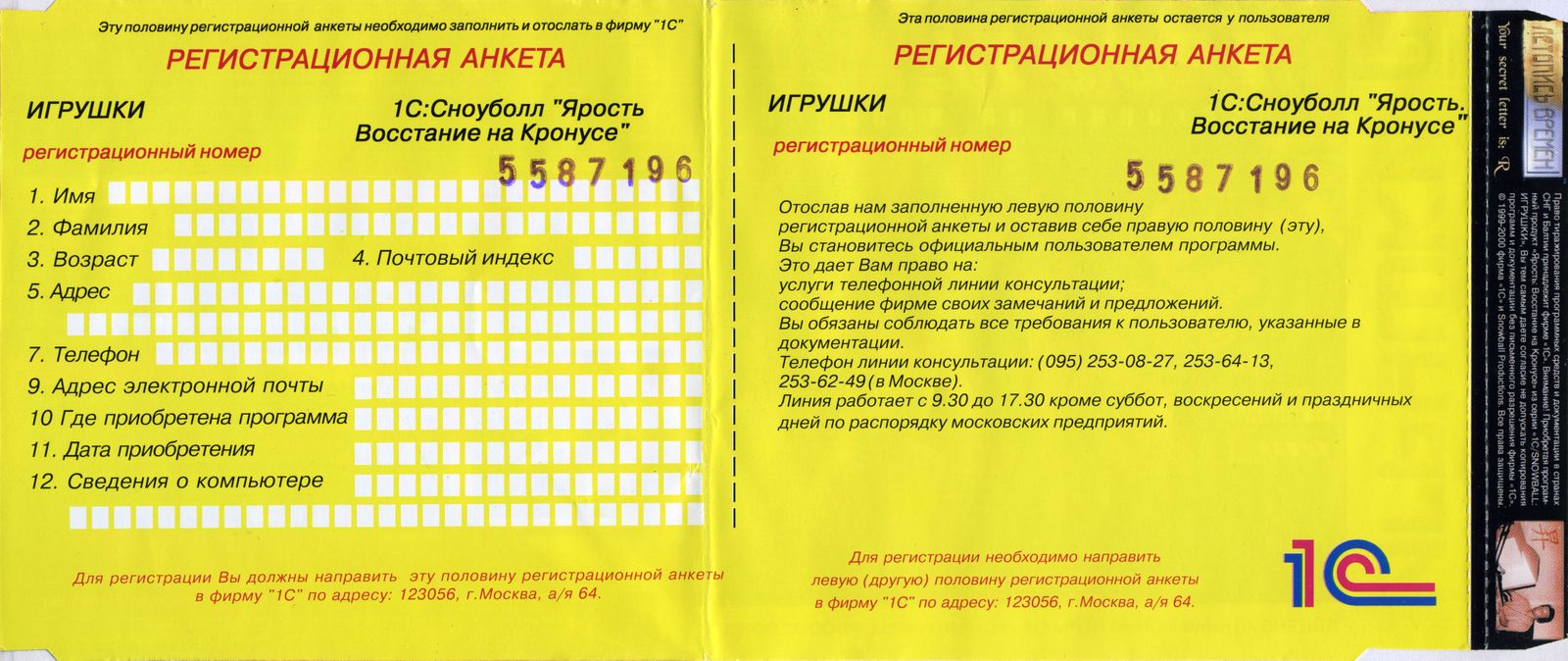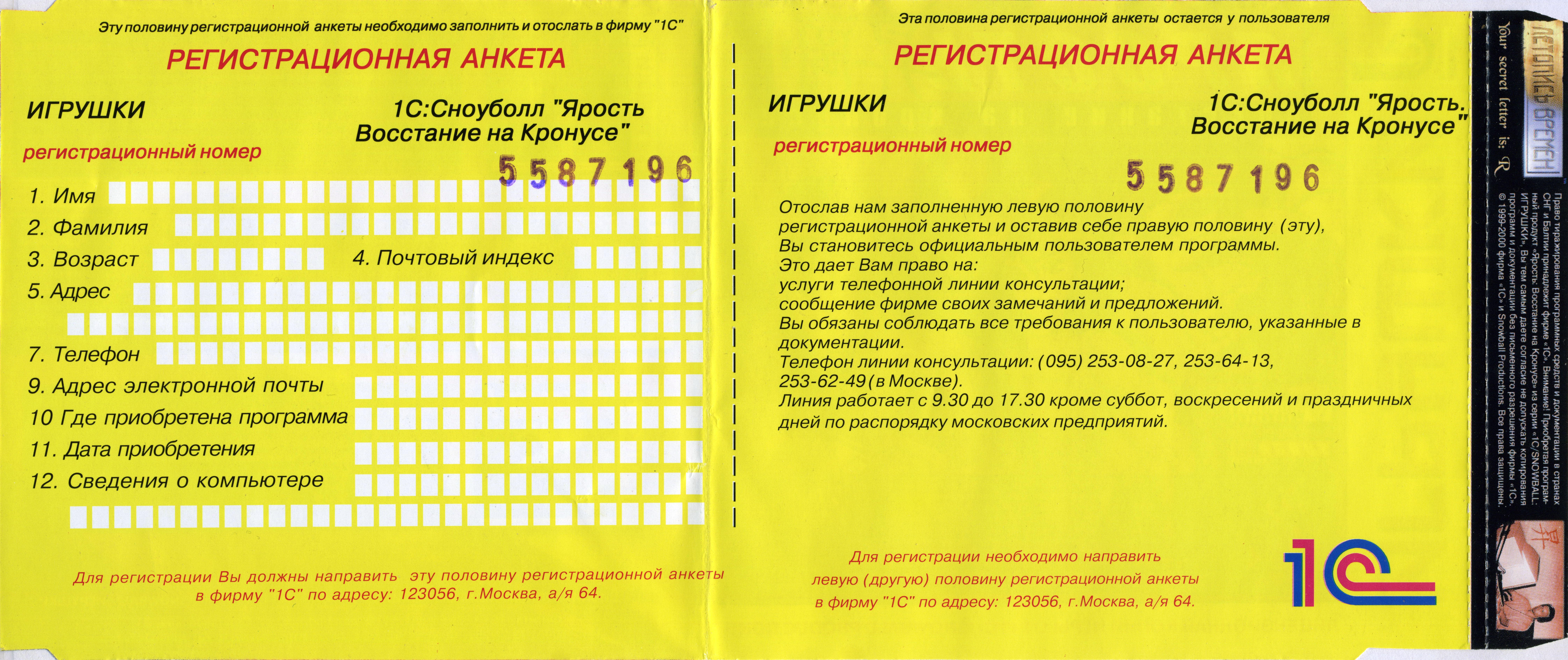 Версия от "1С", оборотная сторона передней обложки
