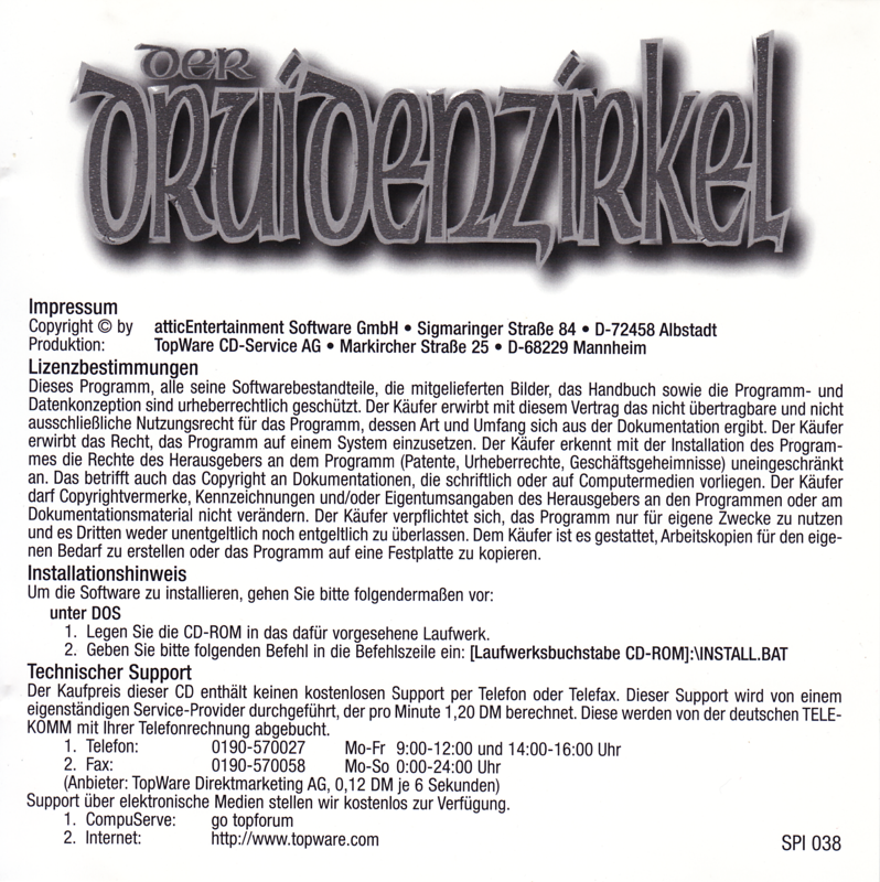 Немецкое переиздание Оборотная сторона передней обложки