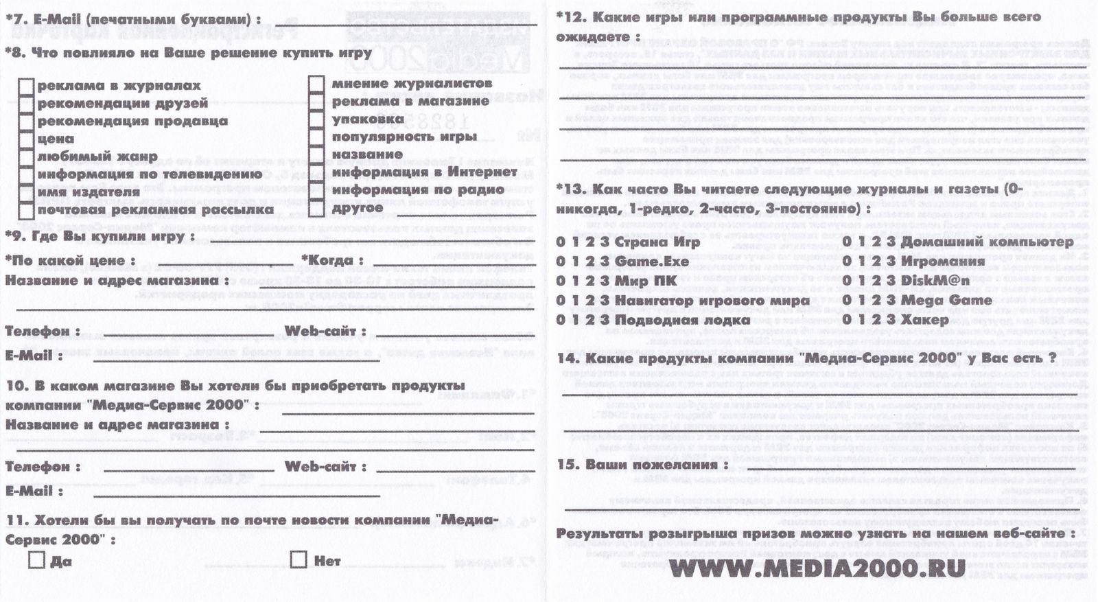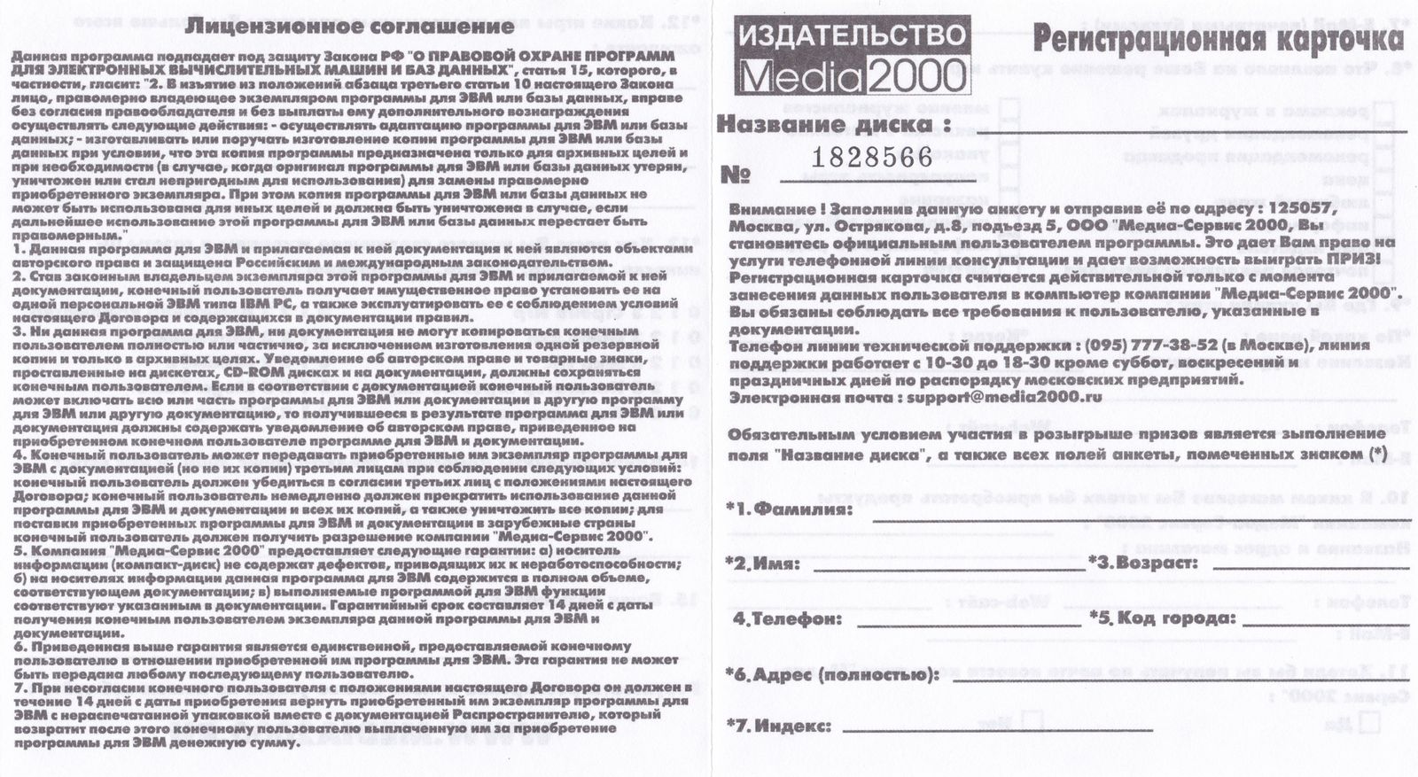 Регистрационная карточка, оборотная сторона