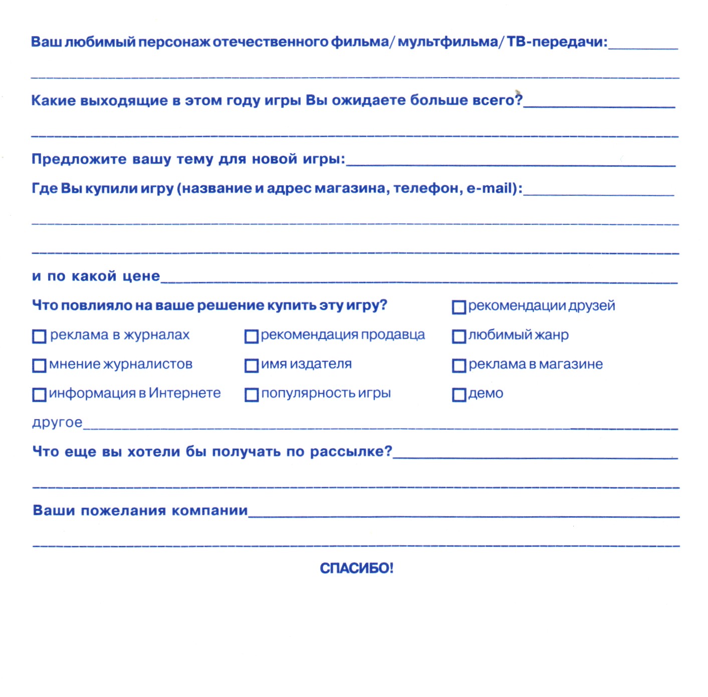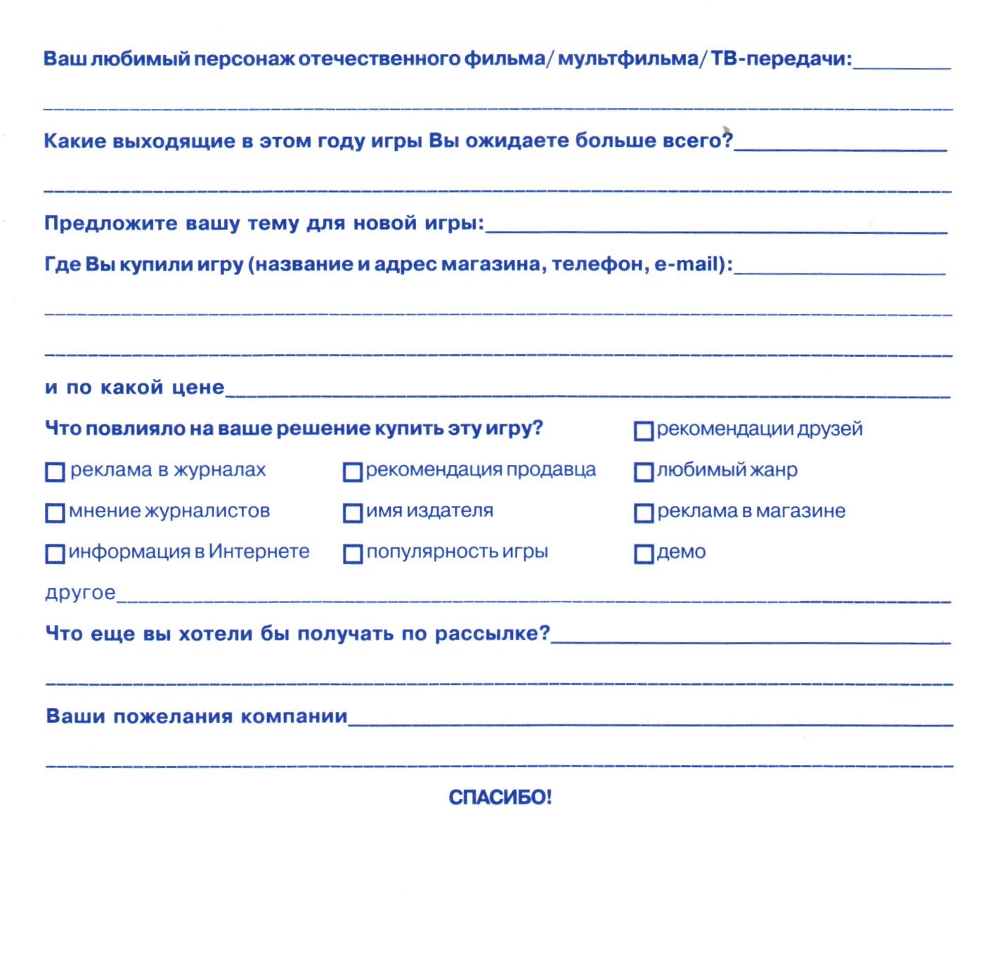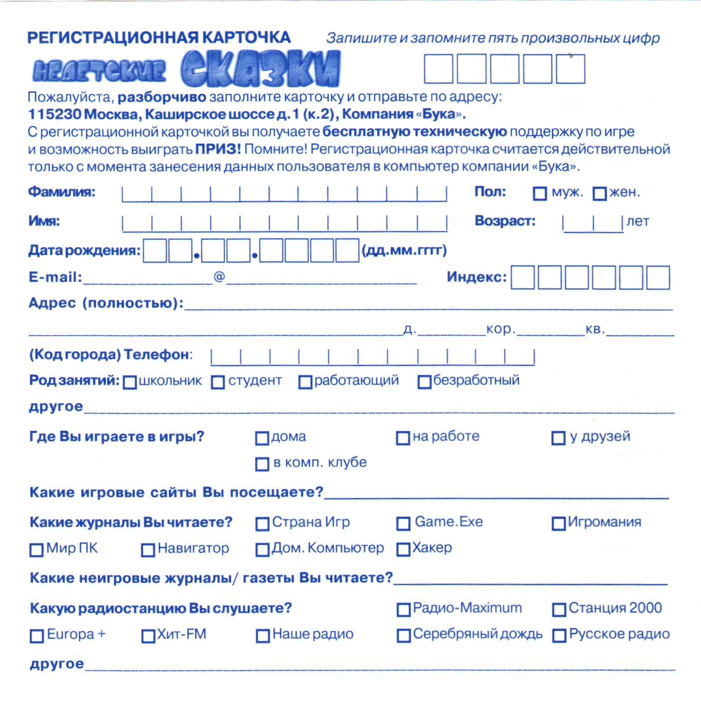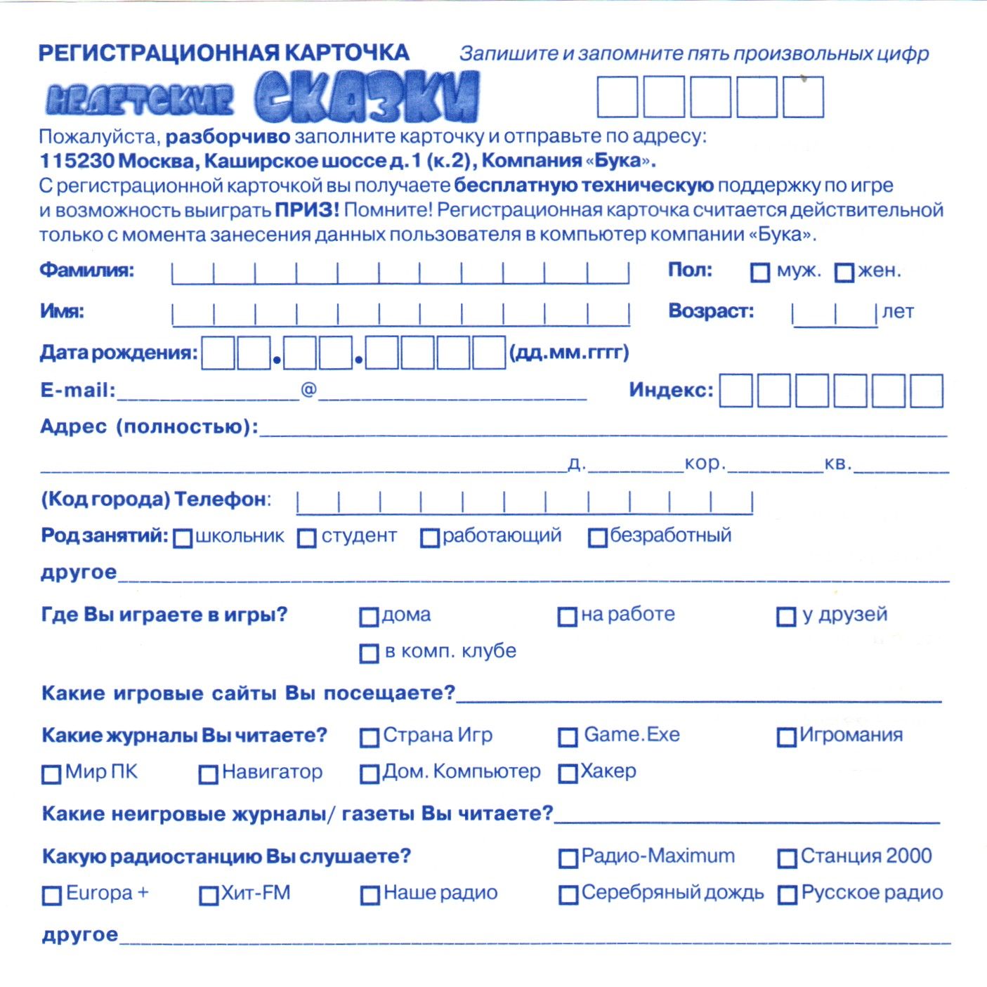 Регистрационная карточка, оборотная сторона