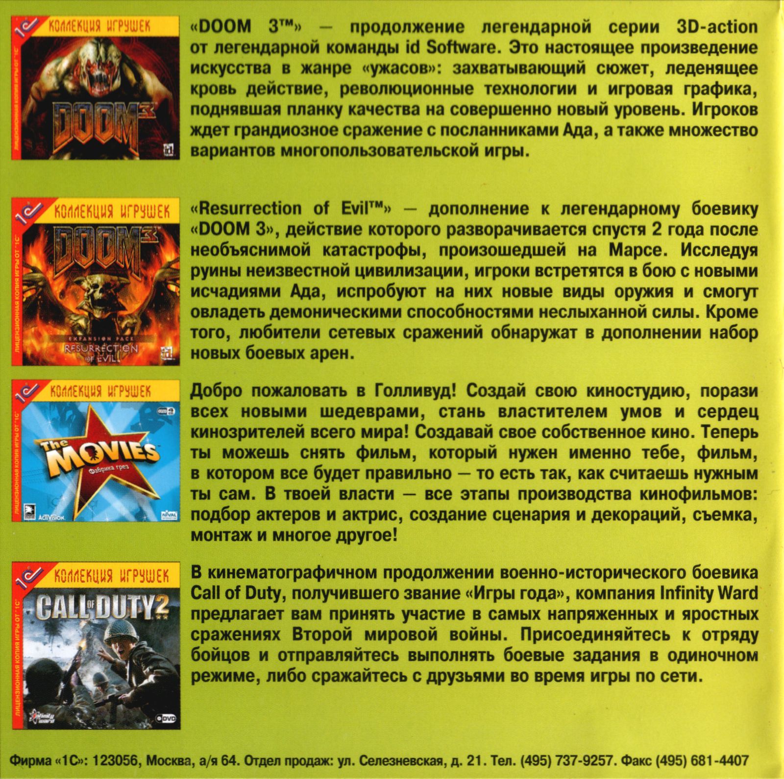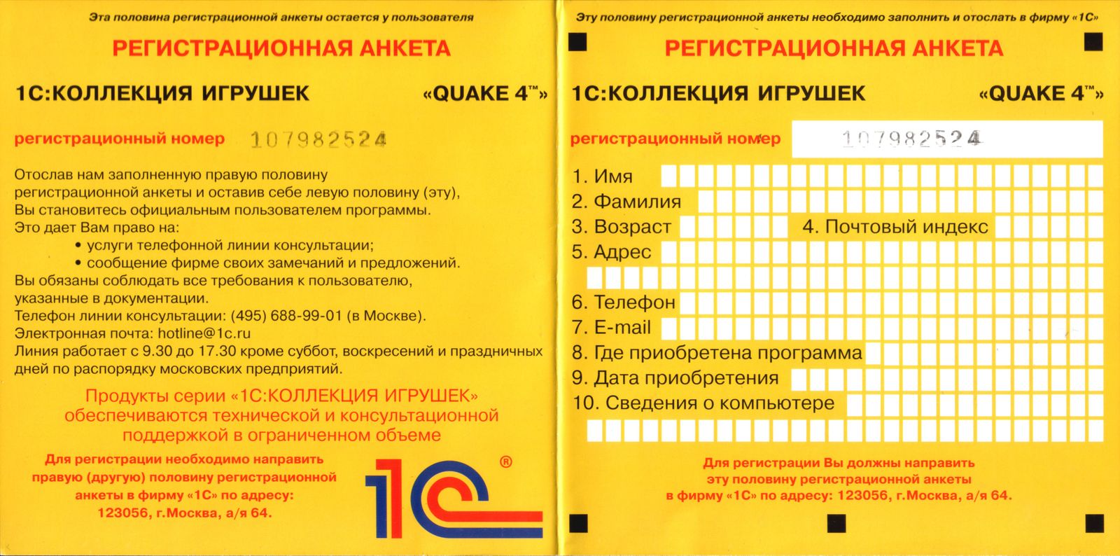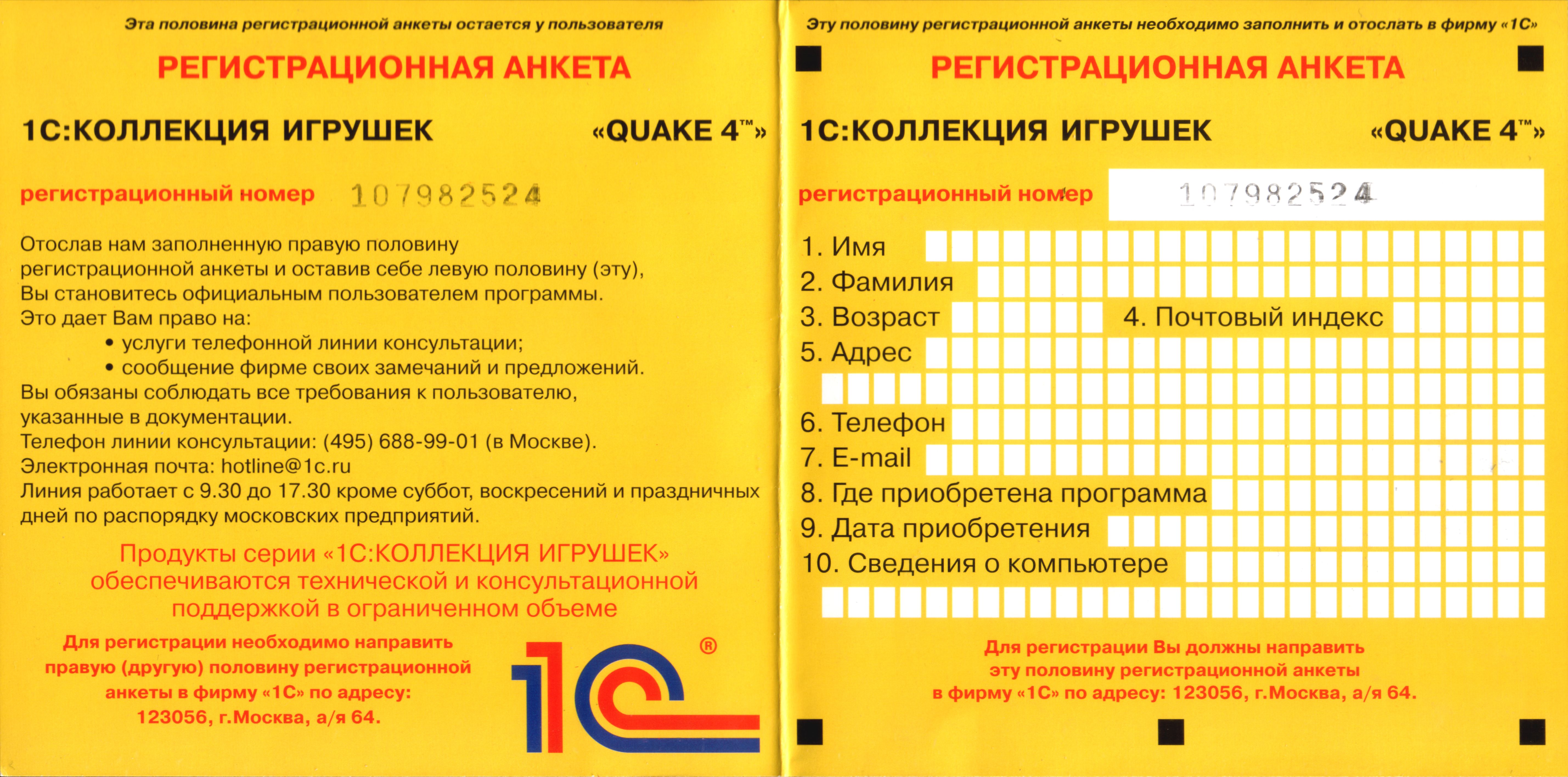 Оборотная сторона передней обложки от издания "1С"