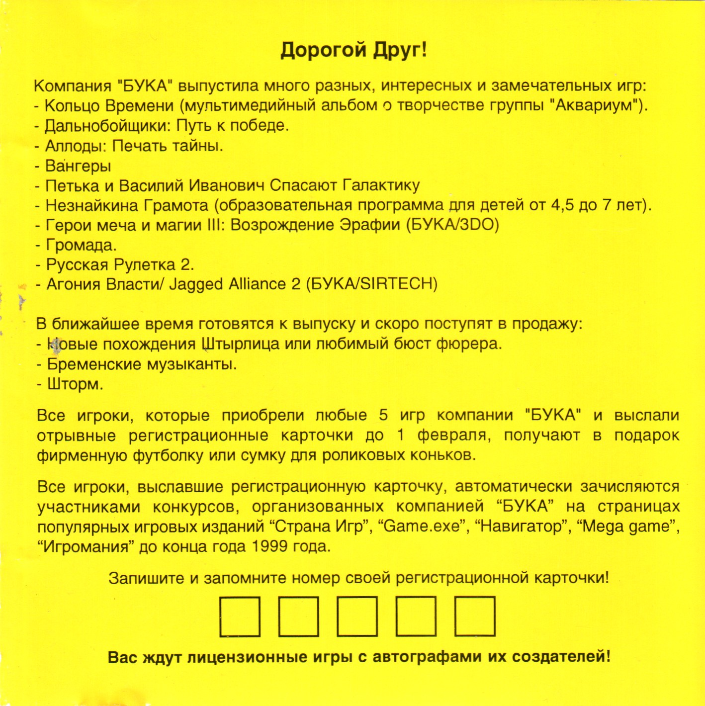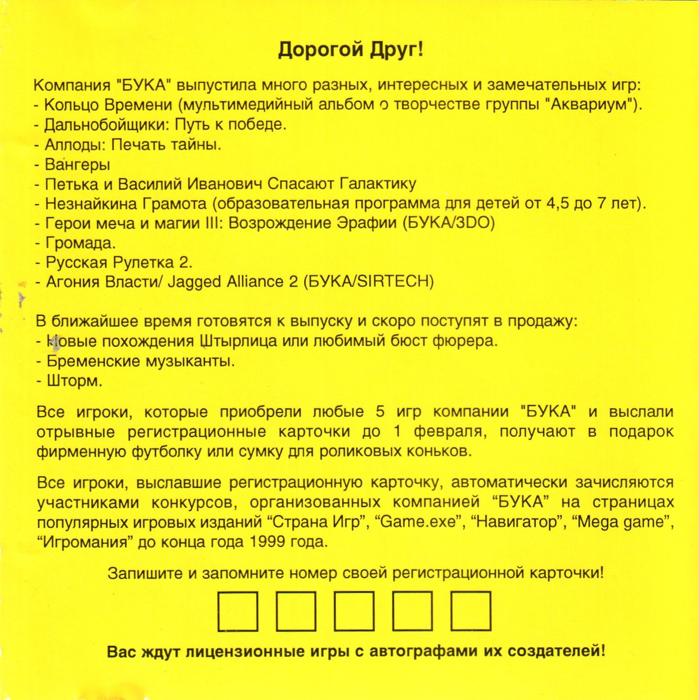 Регистрационная карточка, оборотная сторона