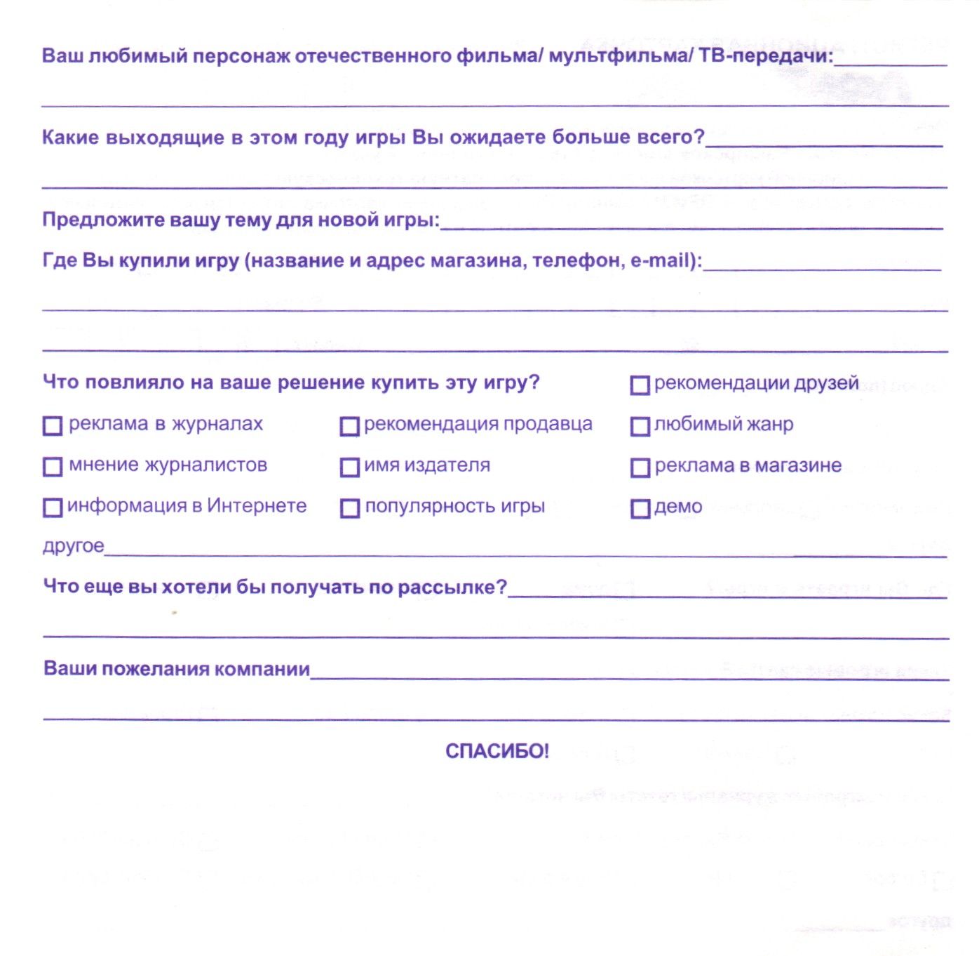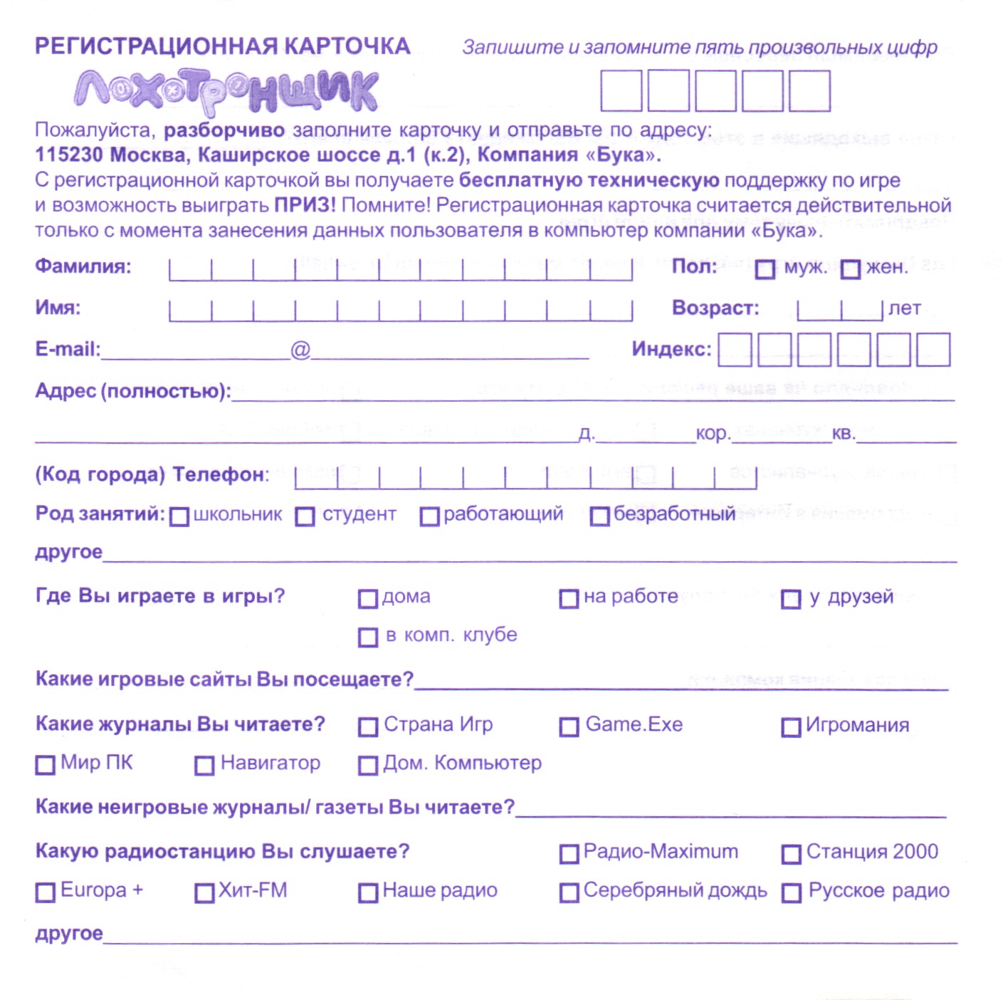 Регистрационная карточка, оборотная сторона