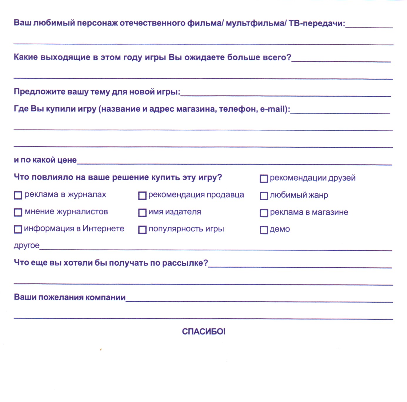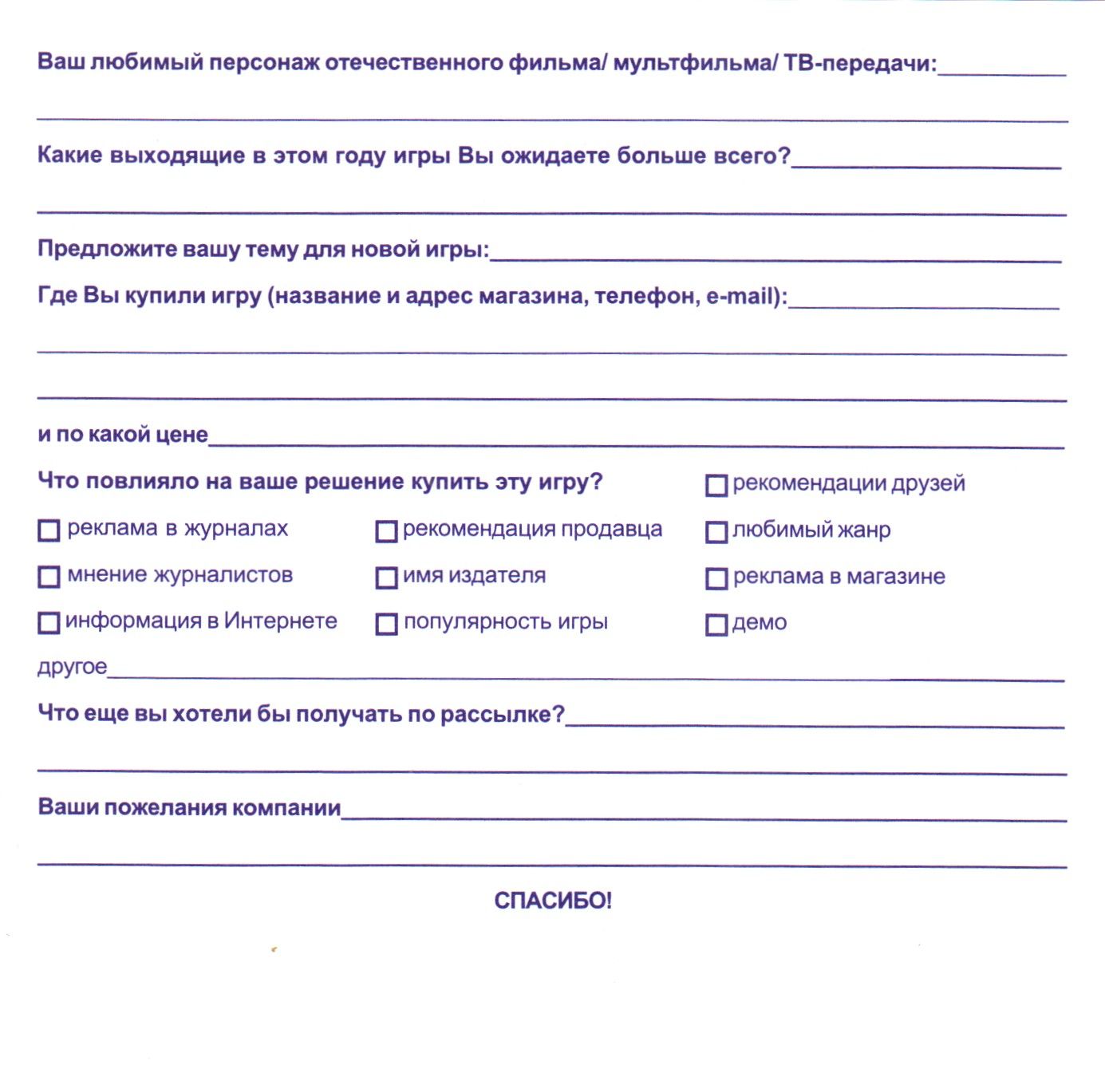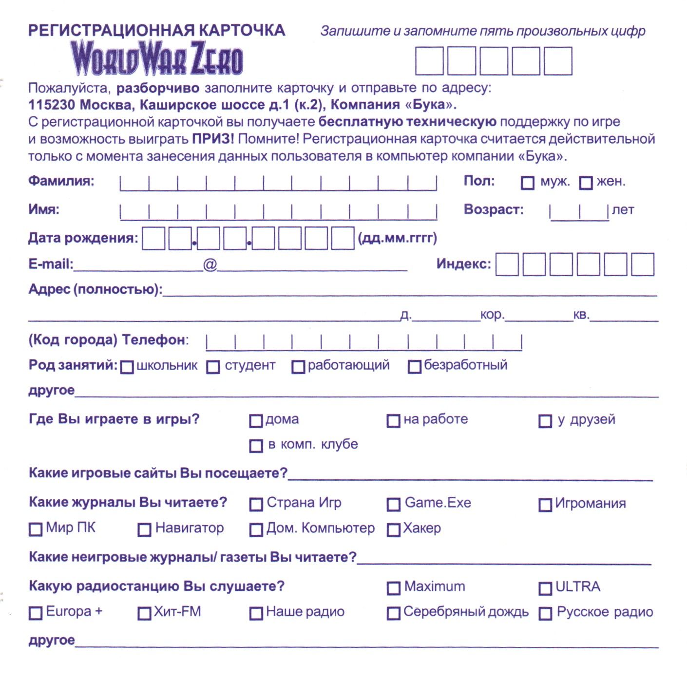 Регистрационная карточка, оборотная сторона