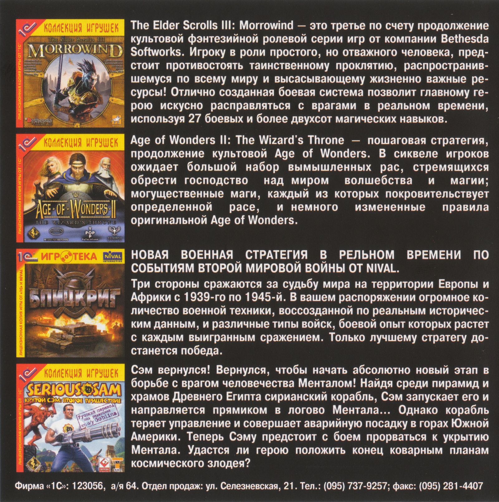 Оборотная сторона передней обложки от издания "1С"