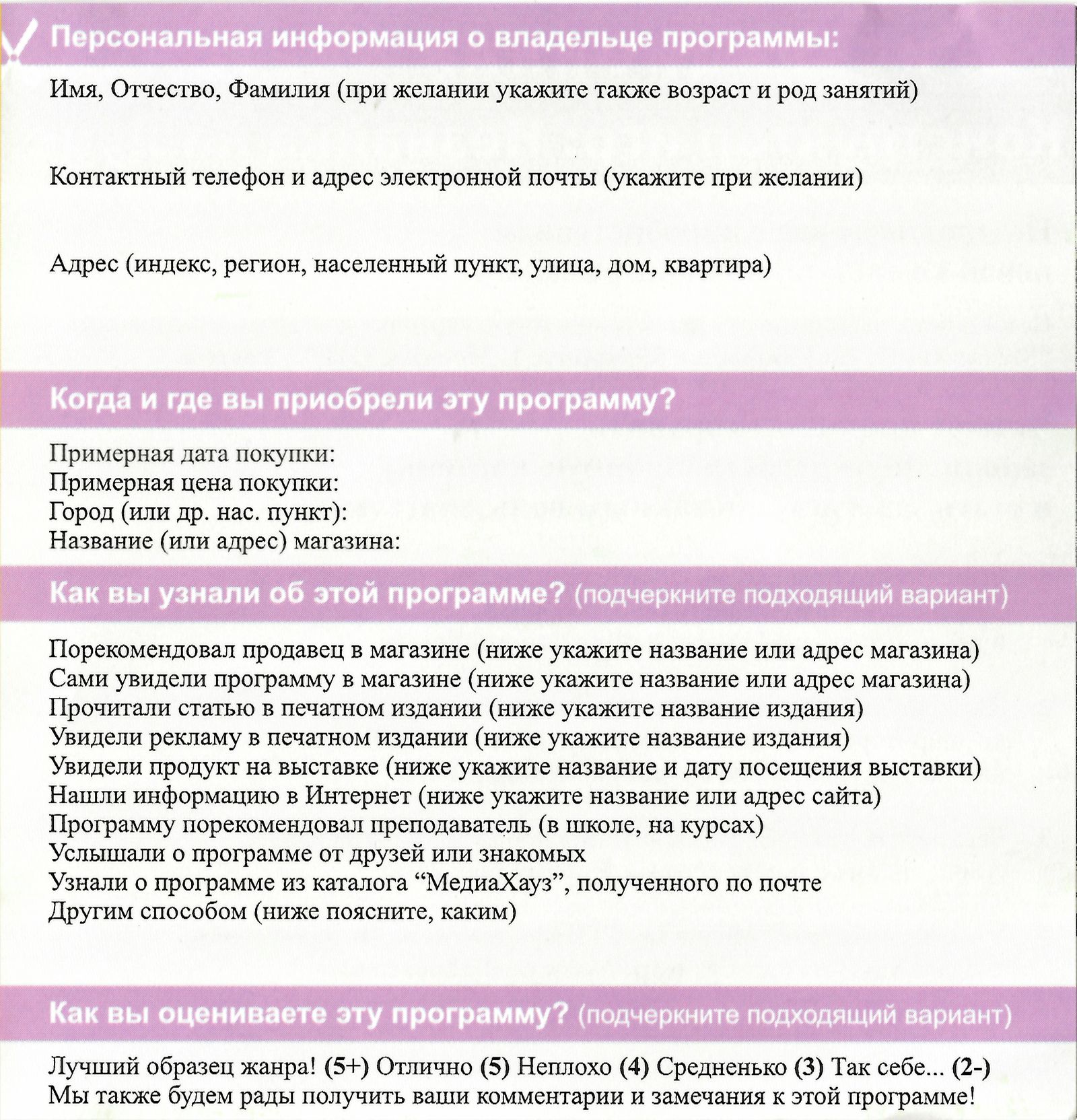 Регистрационная карточка, оборот 2