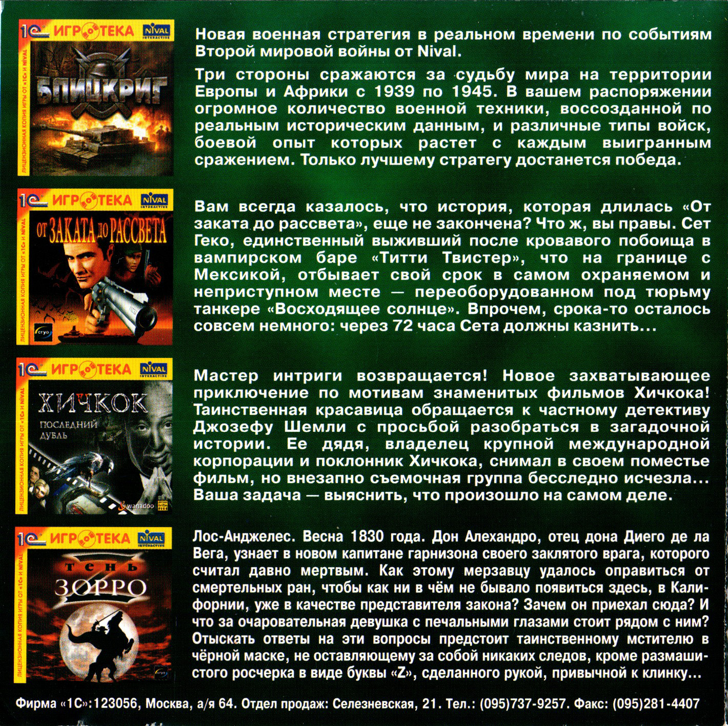 Русская версия. Оборотная сторона передней обложки