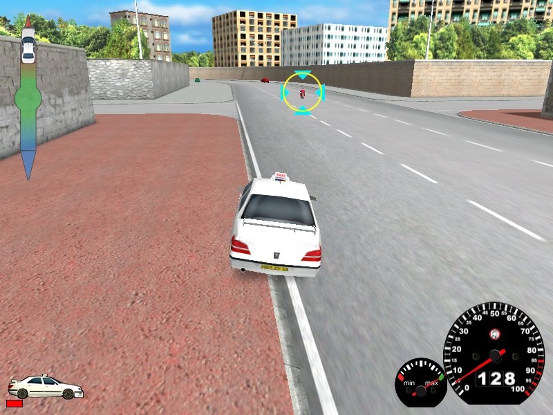 А вот и цель миссии, которую надо преследовать; индикатор сигнализирует, что наша машина слишком близко