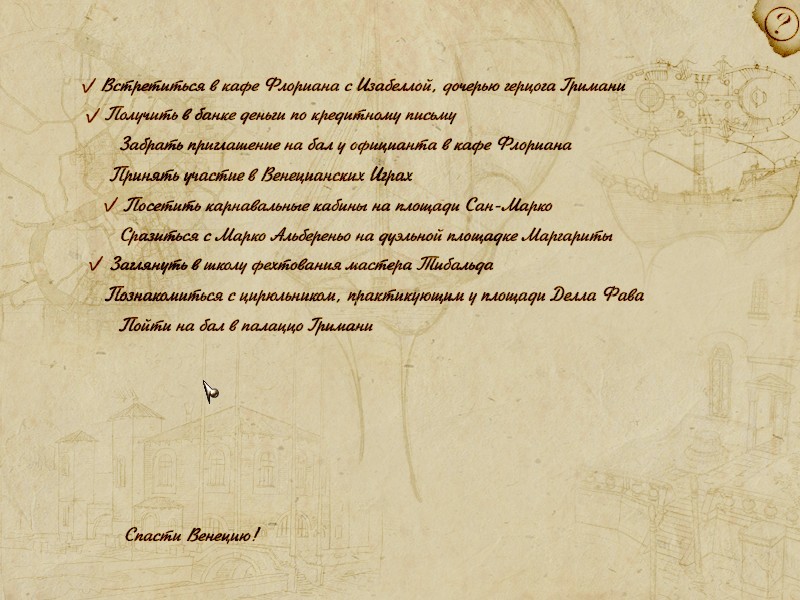 Перечень задач в начале игры